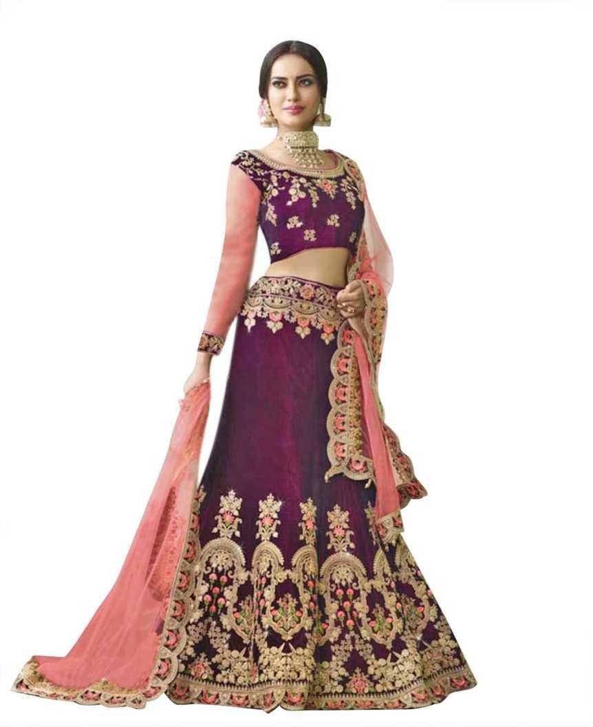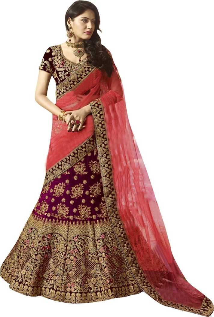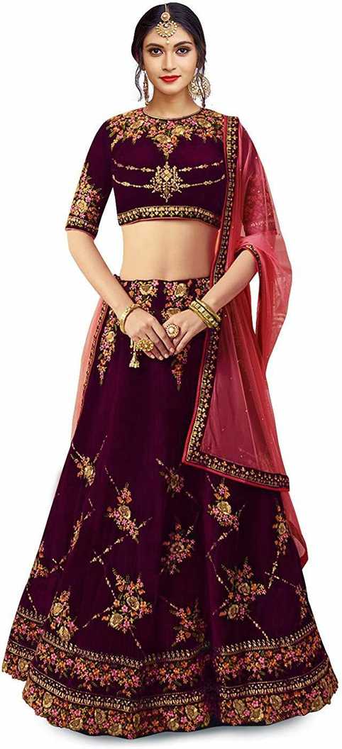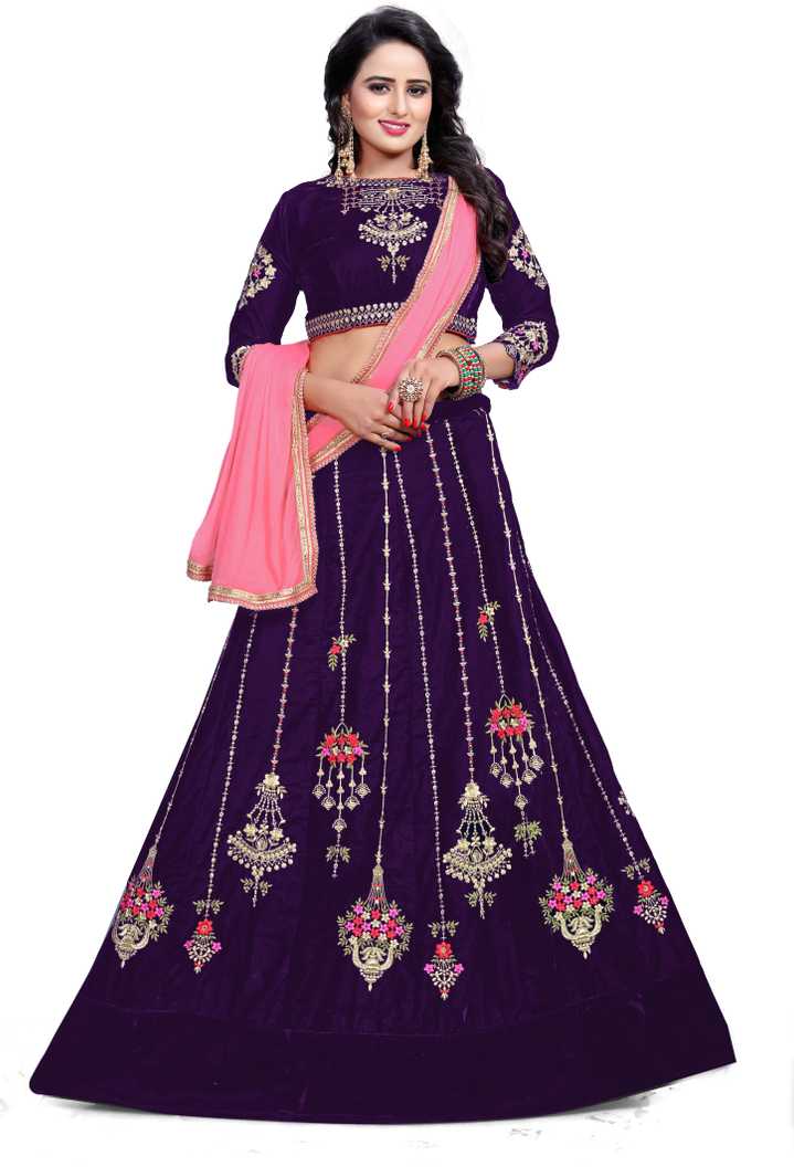 Embroidered Semi Stitched Lehenga Choli (Purple)