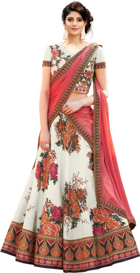 Floral Print Semi Stitched Lehenga, Choli and Dupatta Set (Multicolor)