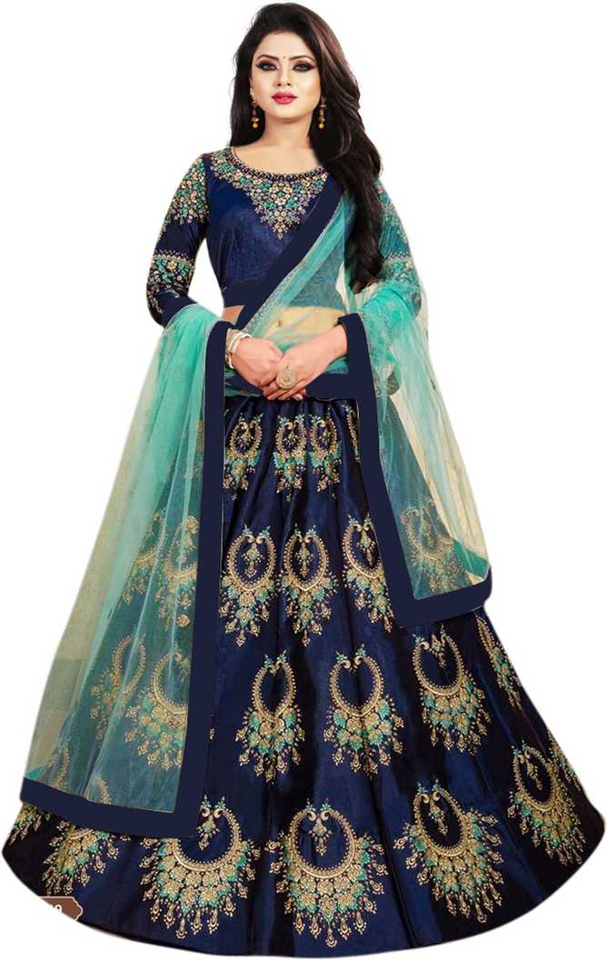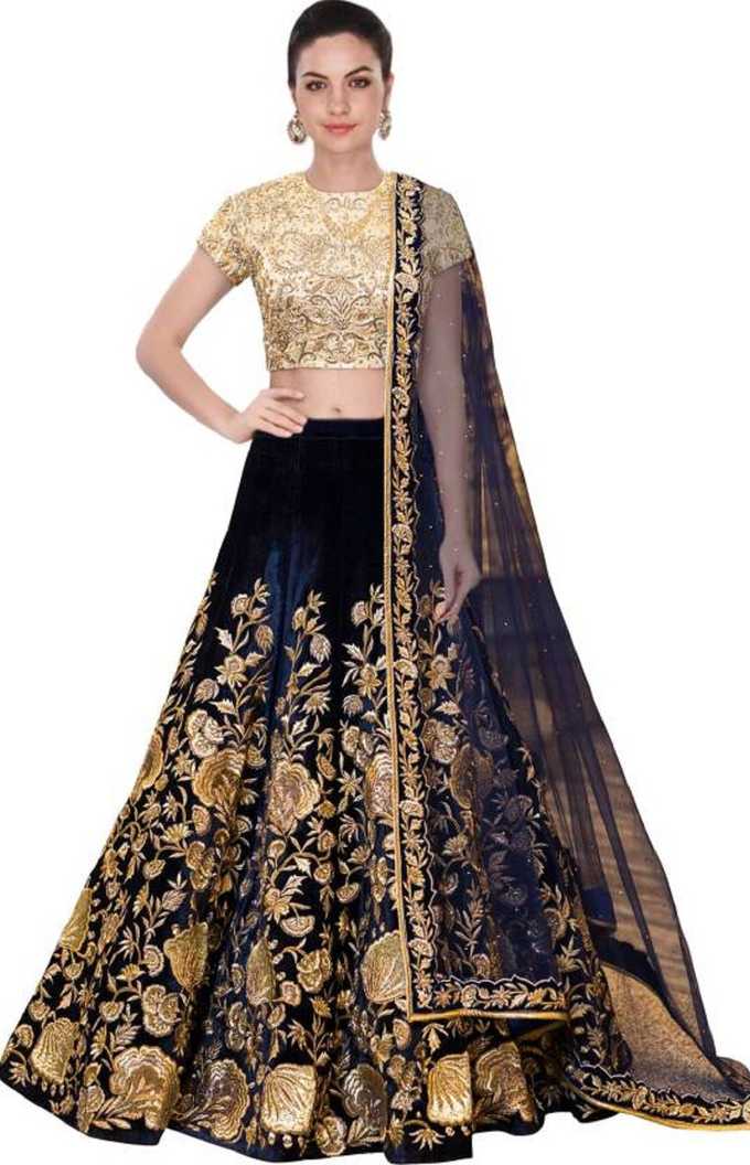 Embroidered Semi Stitched Lehenga Choli (Dark Blue)