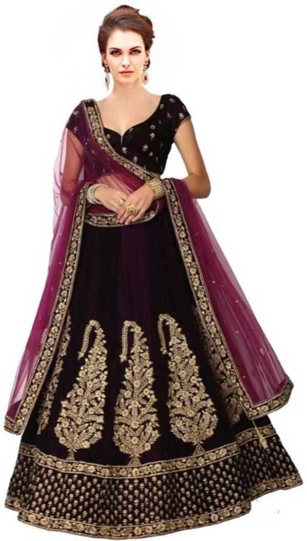 Embroidered Semi Stitched Lehenga, Choli and Dupatta Set (Black)