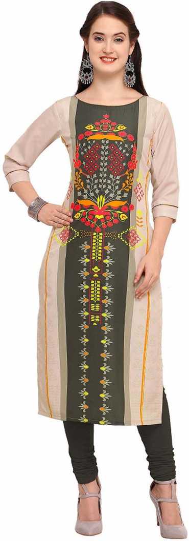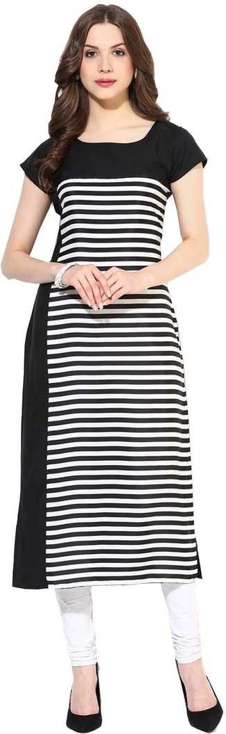 FabTag - Krapal Women Striped Straight Kurta (Black, White)