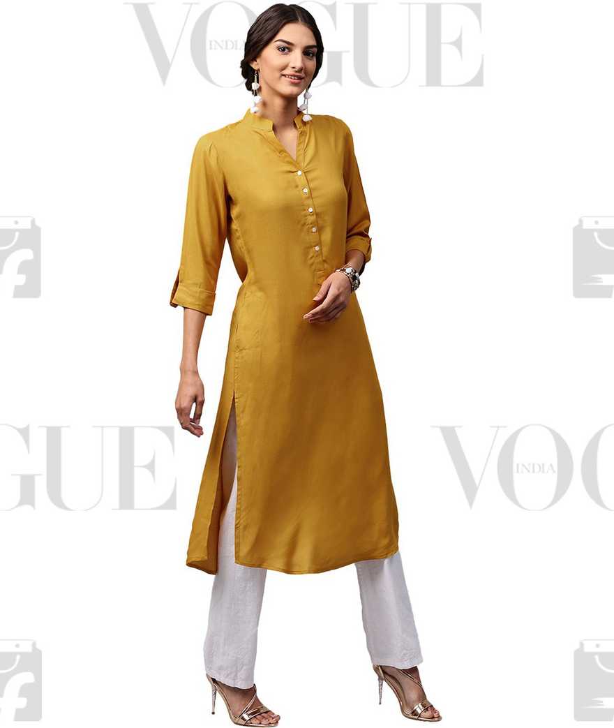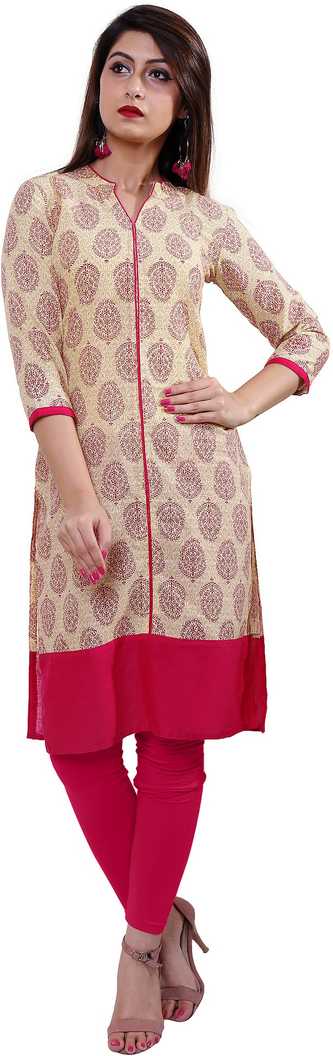 FabTag Casual Solid Women Kurti (Pink, Orange)