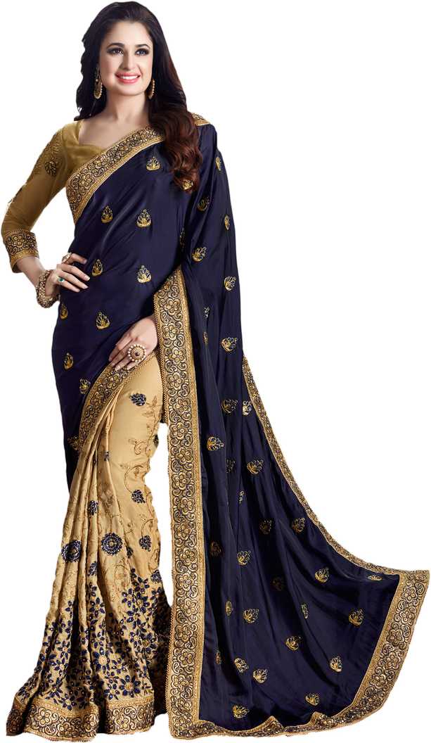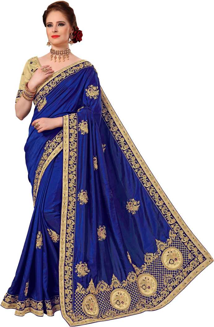 Embroidered Fashion Art Silk Saree (Dark Blue)
