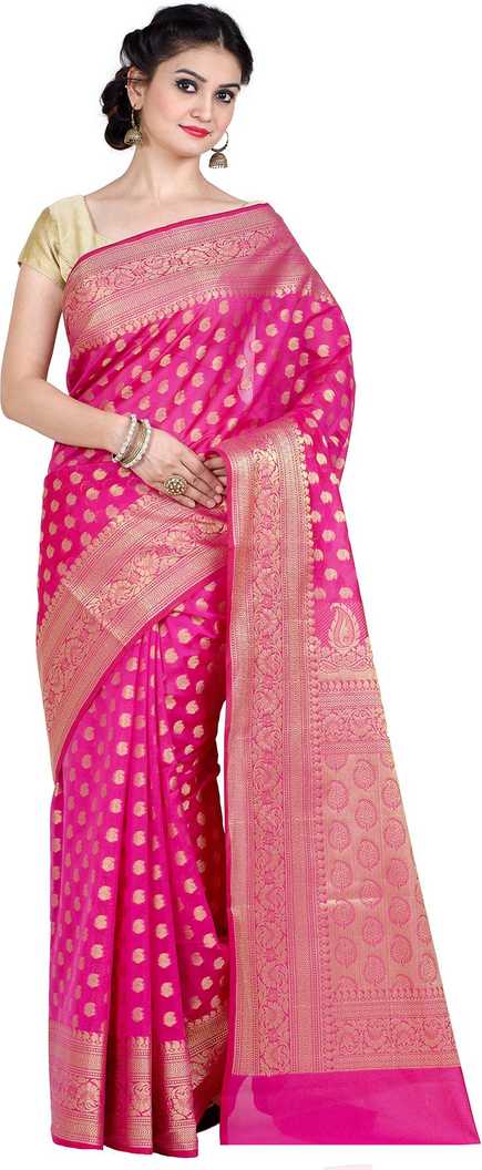 Runu's Boutique Woven Jamdani Handloom Muslin Saree(Pink, Dark Blue)