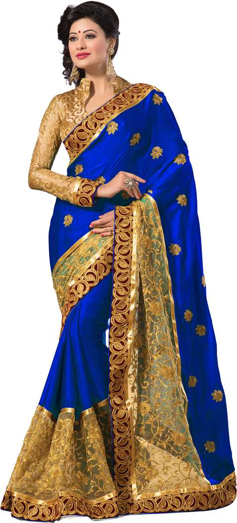 Self Design Fashion Satin, Net Saree (Blue, Gold)