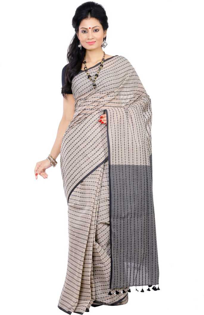 Printed Fashion Handloom Cotton Blend Saree (Black)