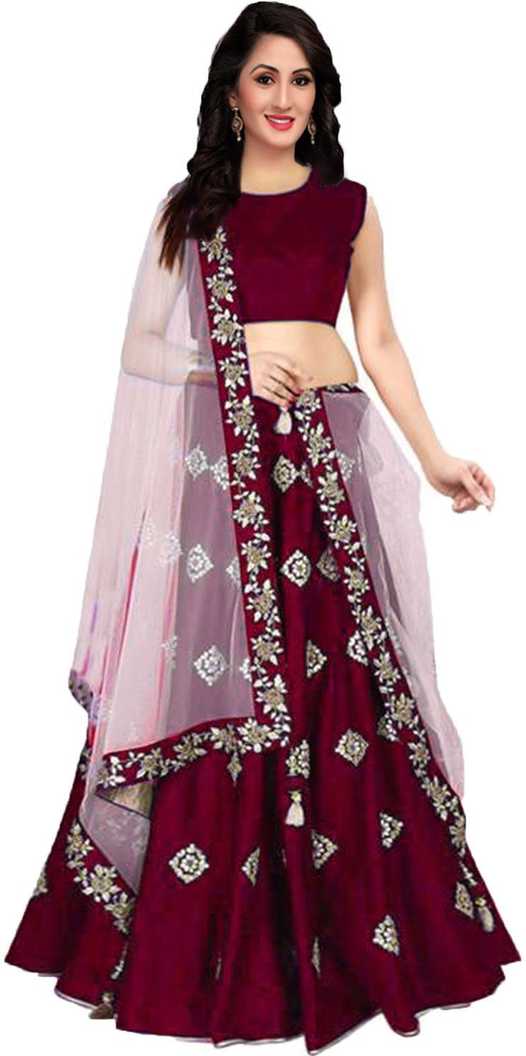 Embroidered Semi Stitched Lehenga Choli (Red)