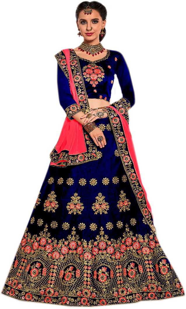 Embroidered Semi Stitched Lehenga, Choli and Dupatta Set (Blue)