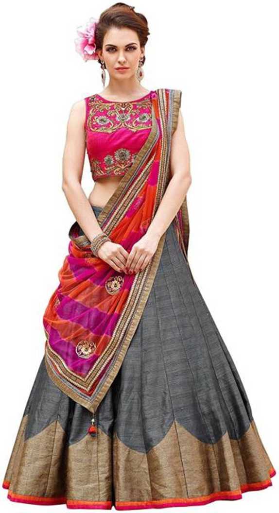 Embroidered Semi Stitched Lehenga Choli (Grey)