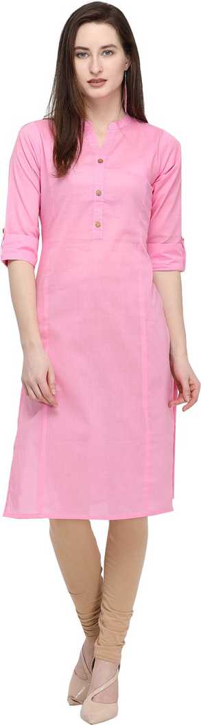 Women Solid Frontslit Kurta (Pink)#JustHere