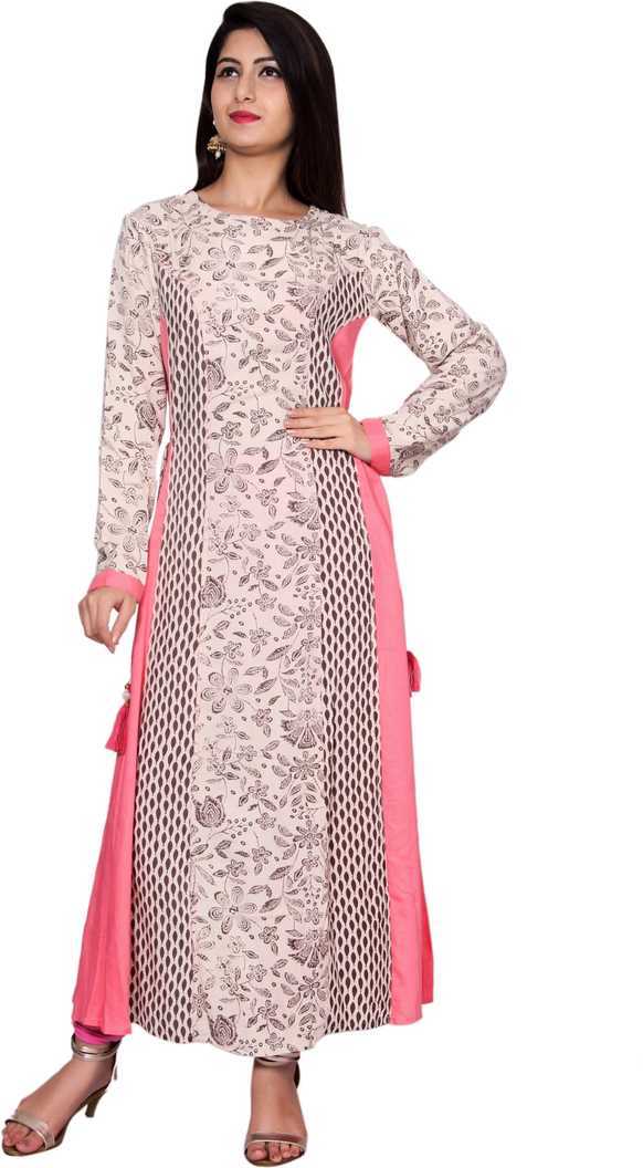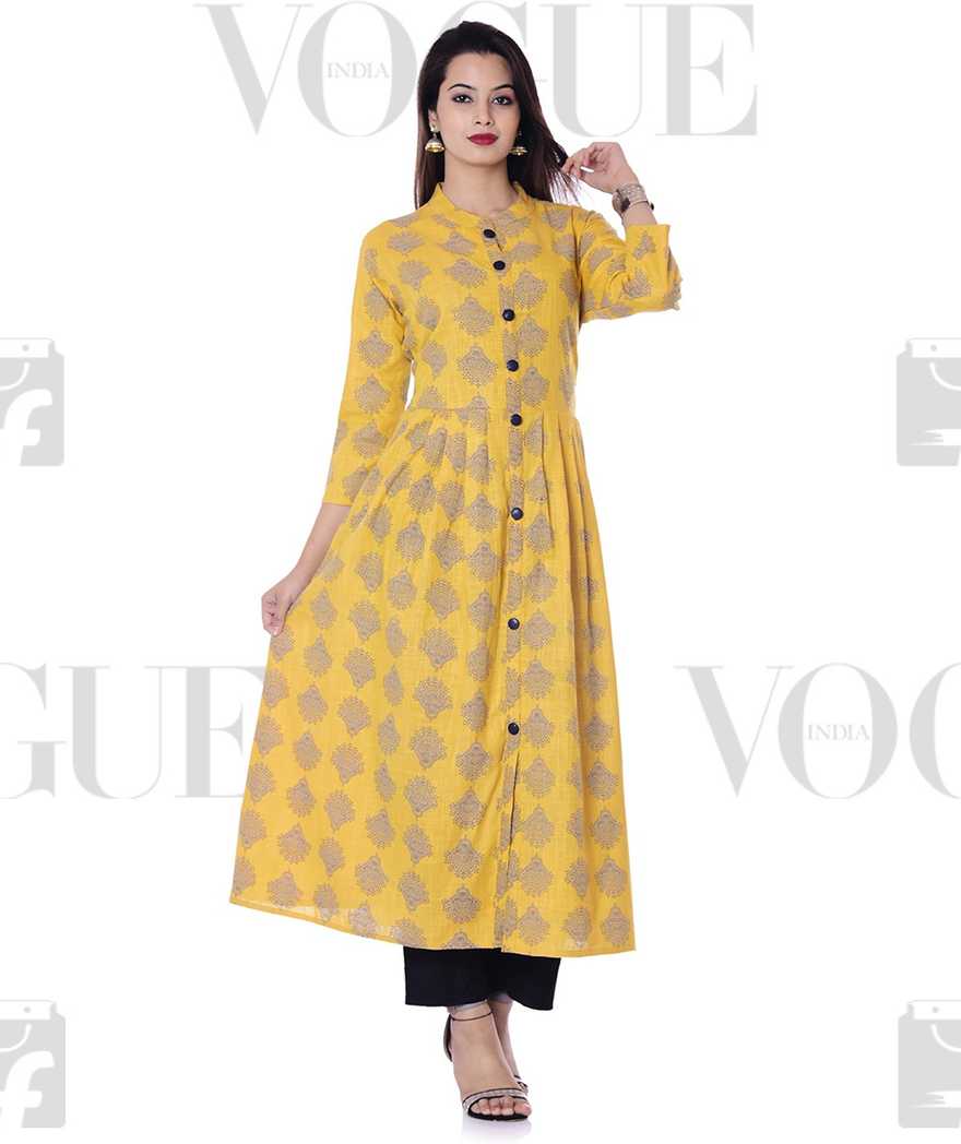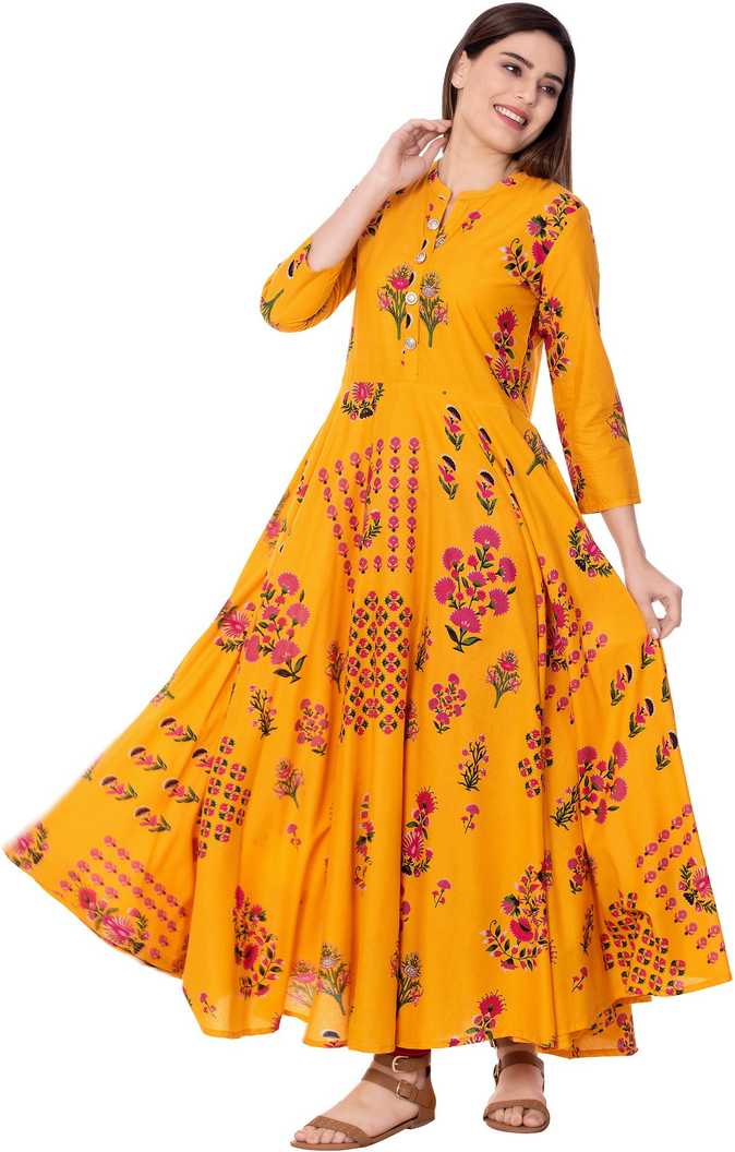 Women Floral Print Anarkali Kurta (Yellow, Beige)