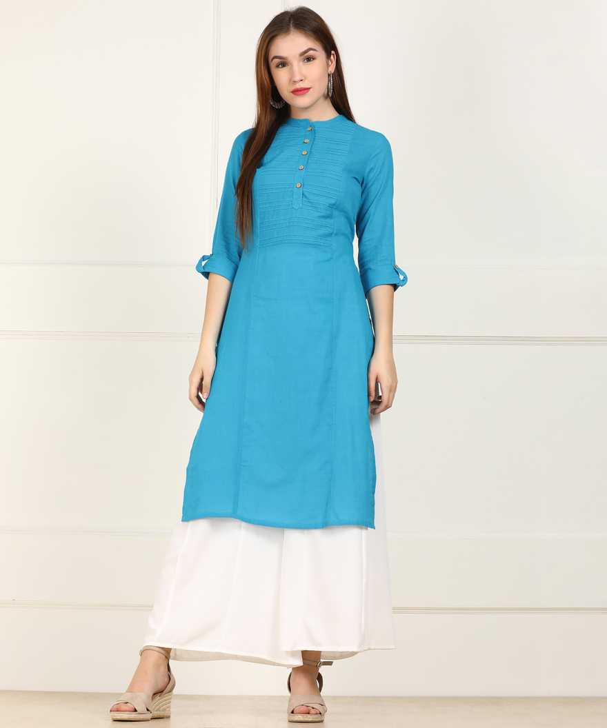 Rang Nitya Solid Women Straight Kurta (Blue)