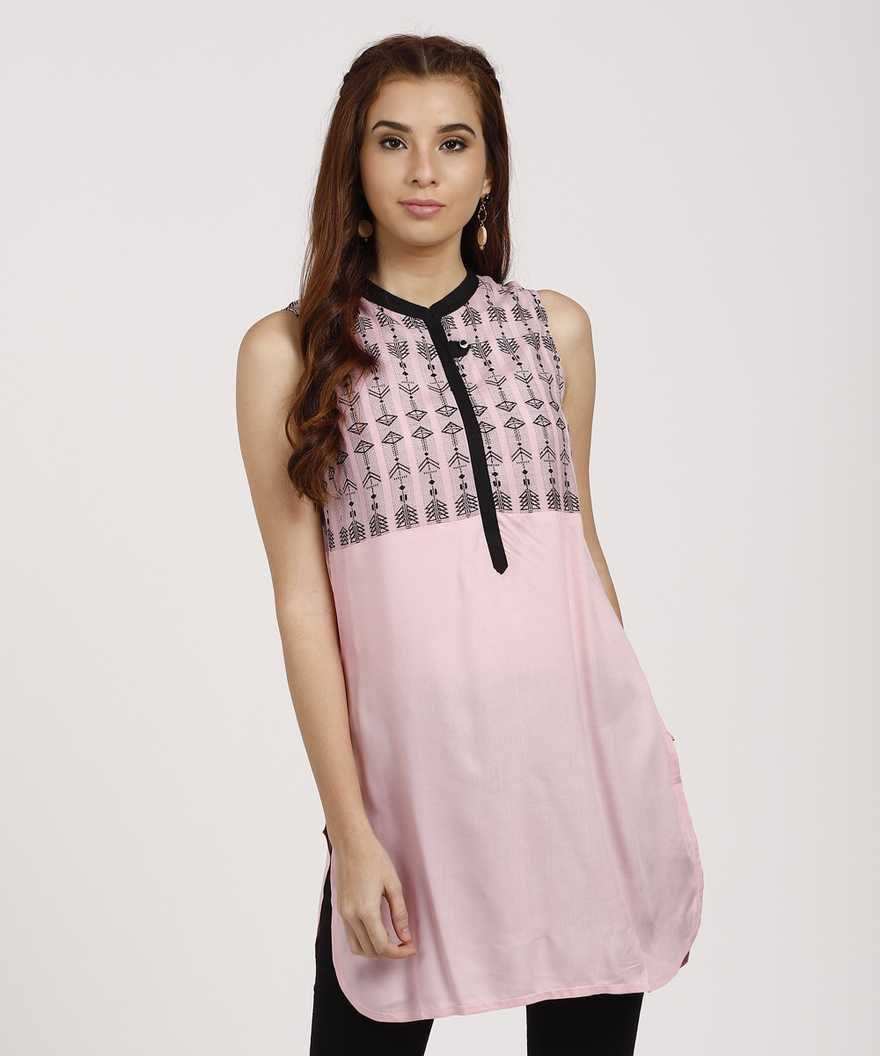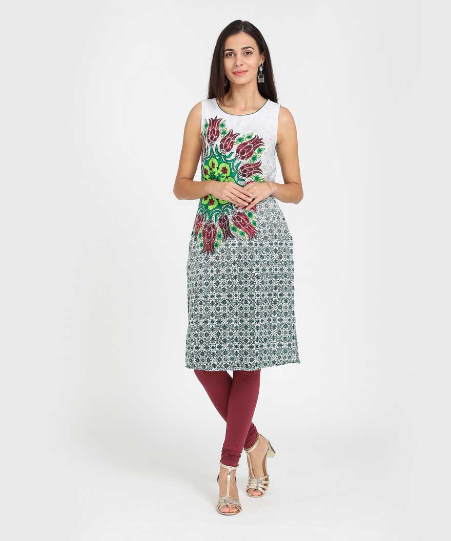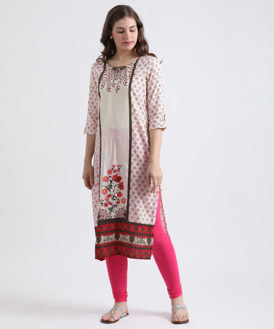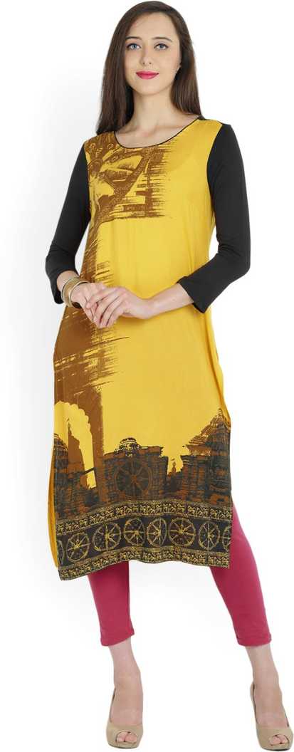 Women Chevron/Zig Zag Straight Kurta (Black, Orange, White)