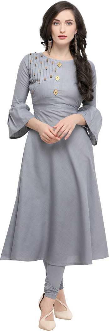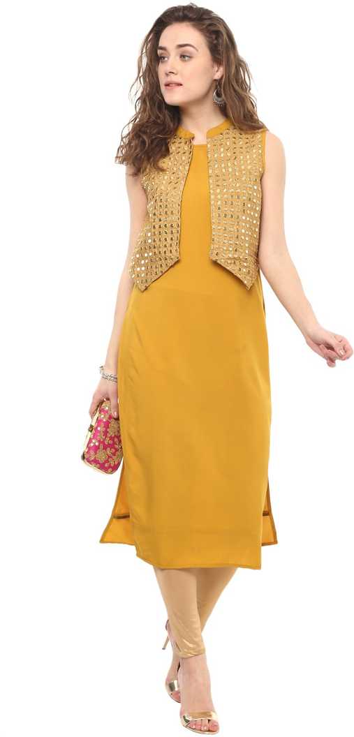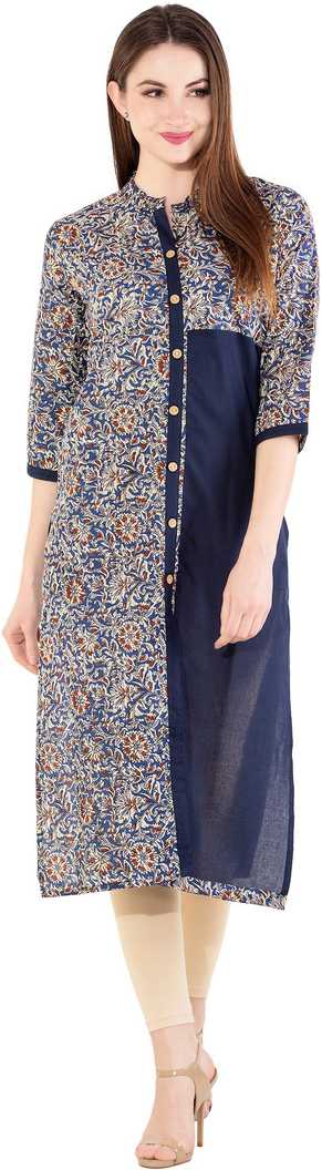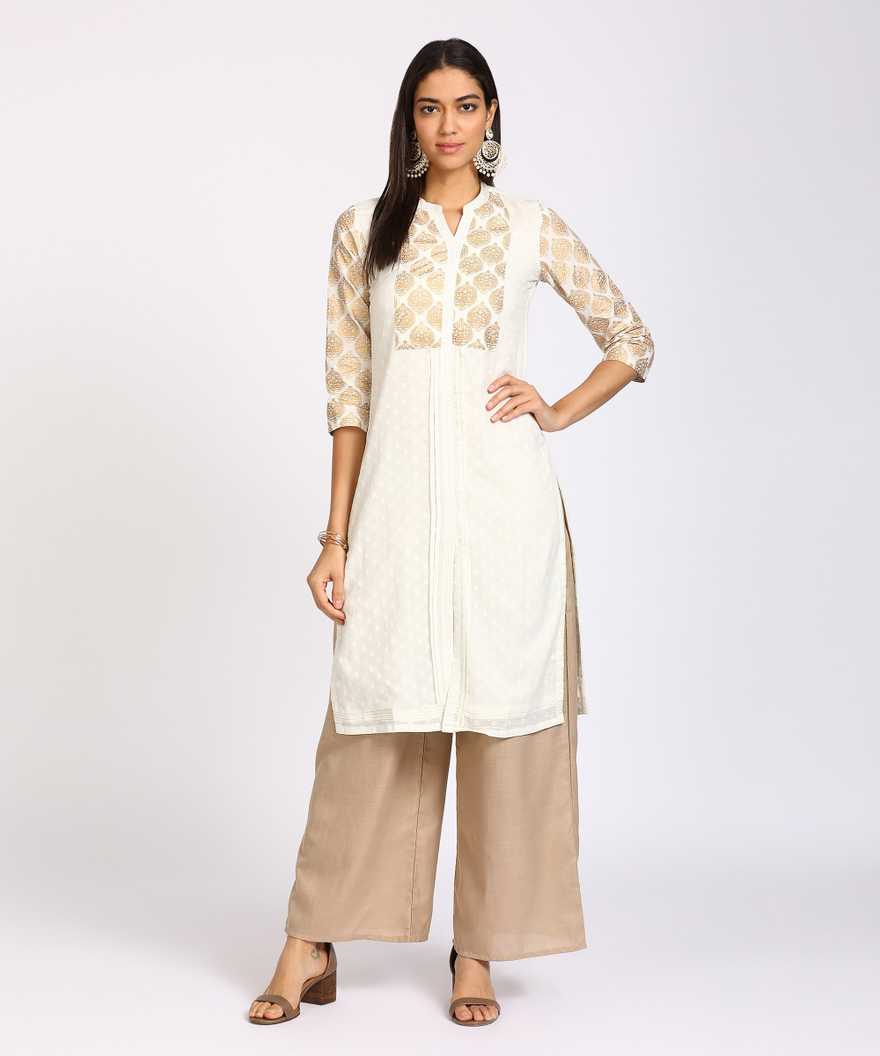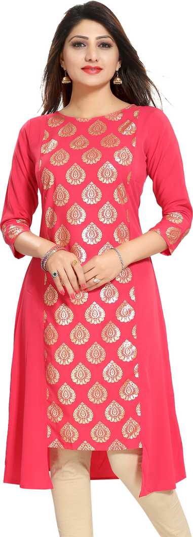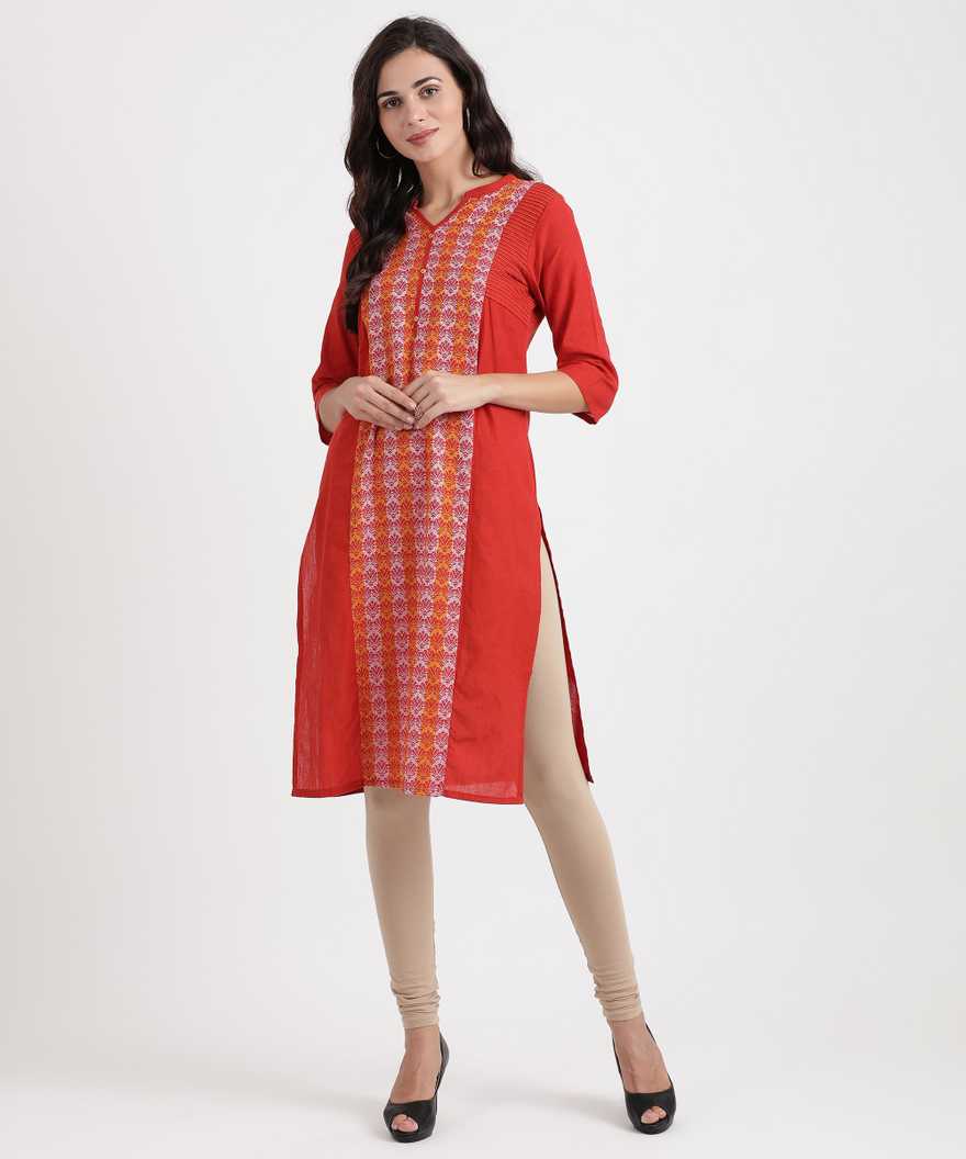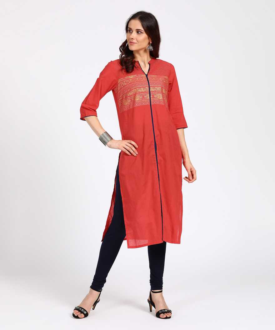 Women Self Design, Block Print A-line Kurta (Orange, Gold)