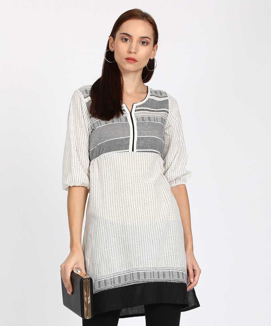 FabTag - Krapal Women Striped Straight Kurta (Black, White)