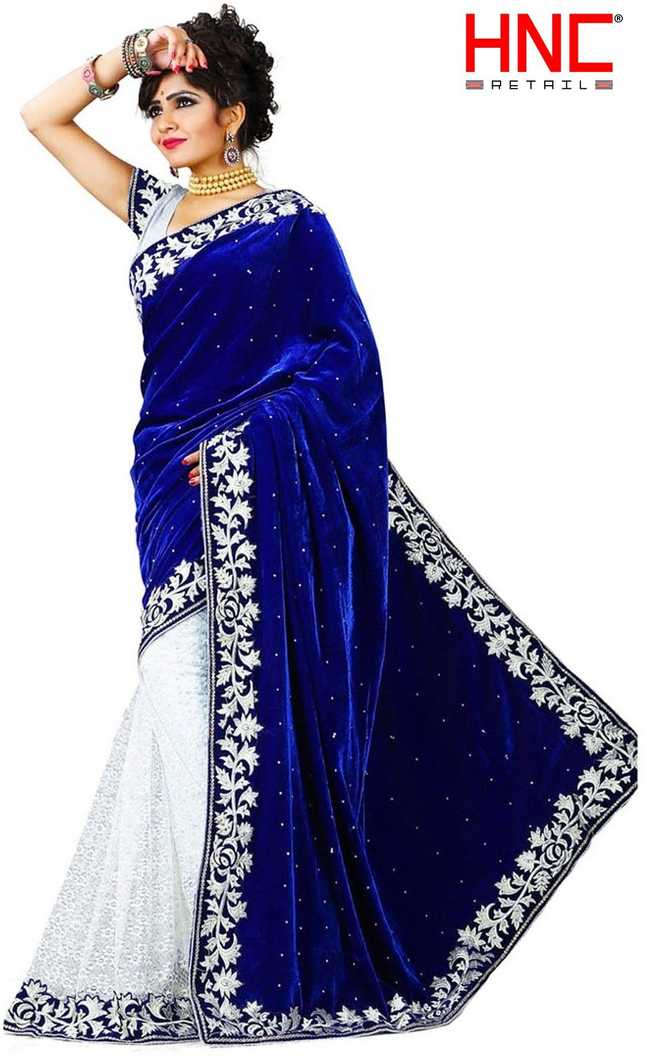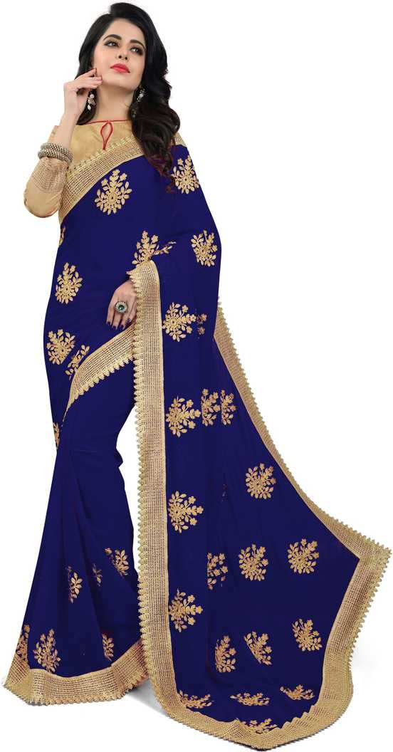 Embroidered Bollywood Poly Georgette Saree (Dark Blue)