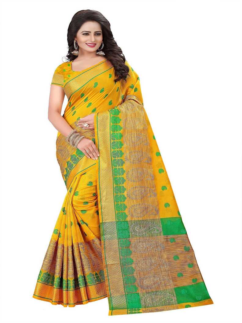 Woven Banarasi Cotton Blend, Poly Silk, Tussar Silk Saree (Multicolor)