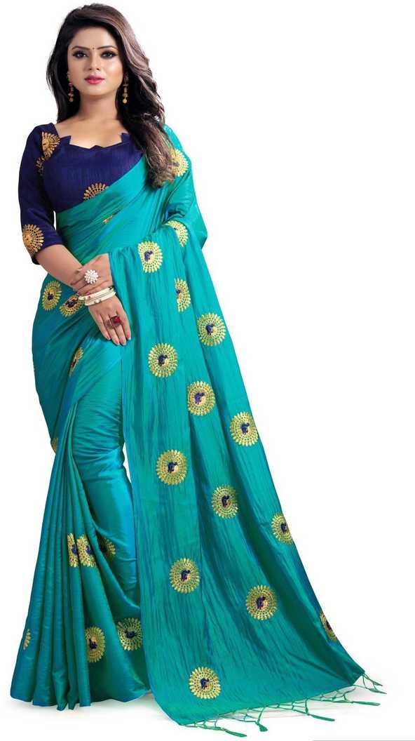 Embroidered Bollywood Poly Silk Saree (Blue)