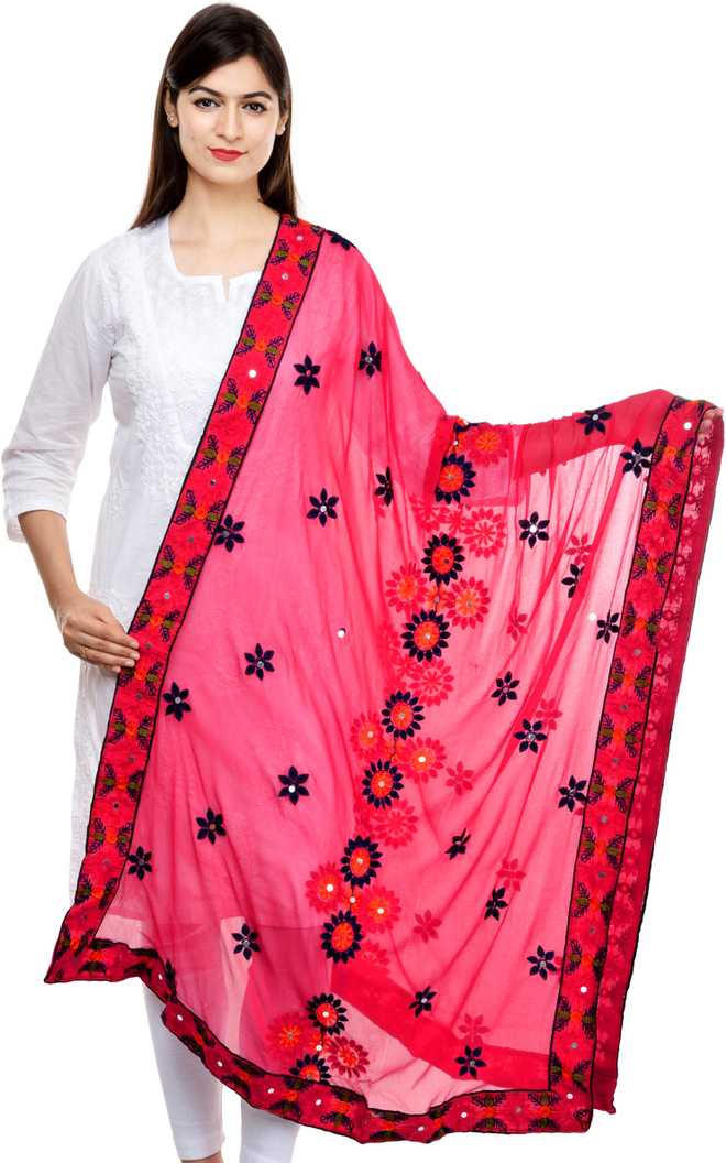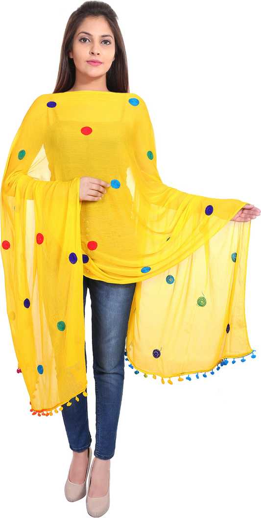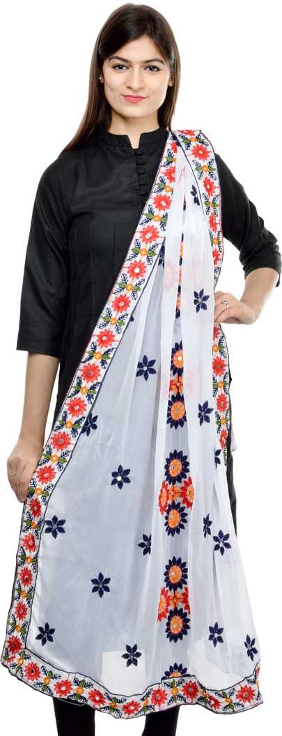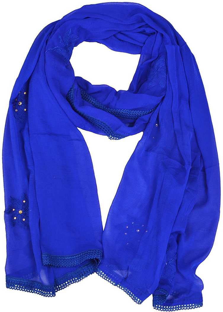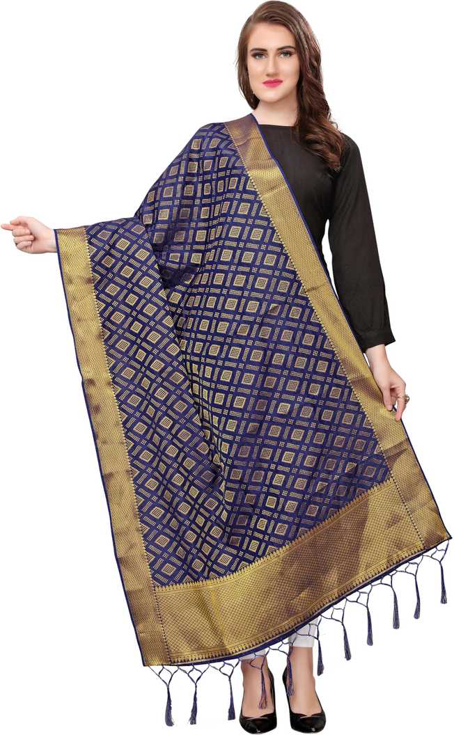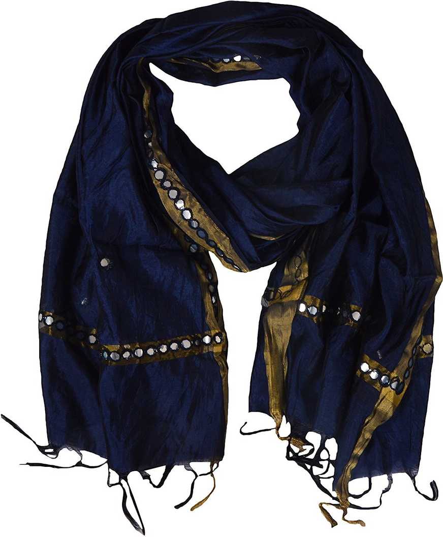 Silk Cotton Blend Embroidered, Embellished Dark Blue Women Dupatta