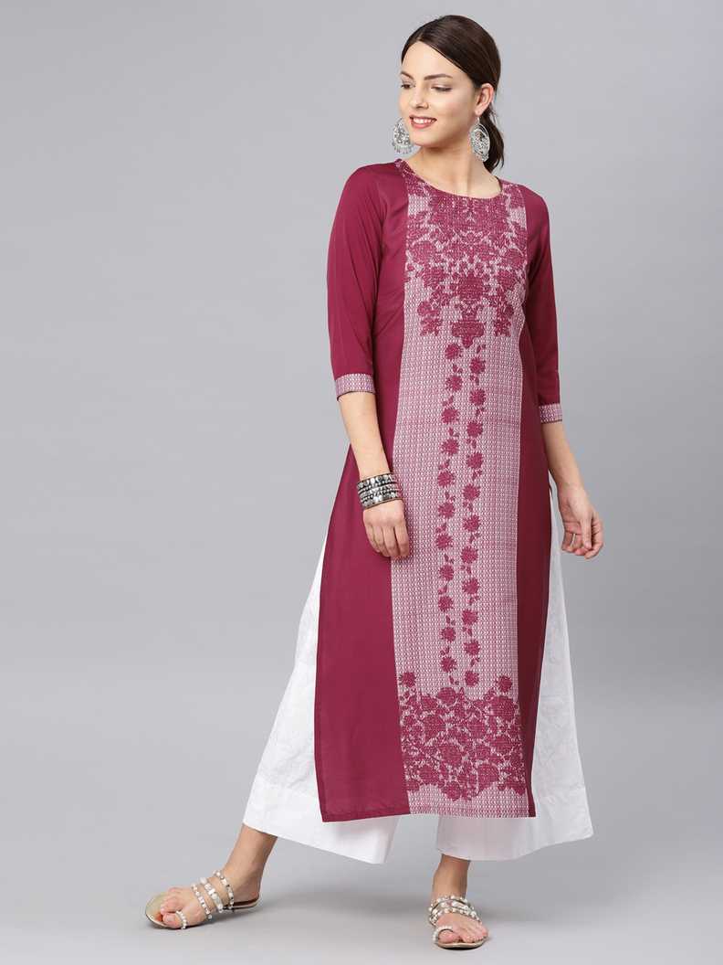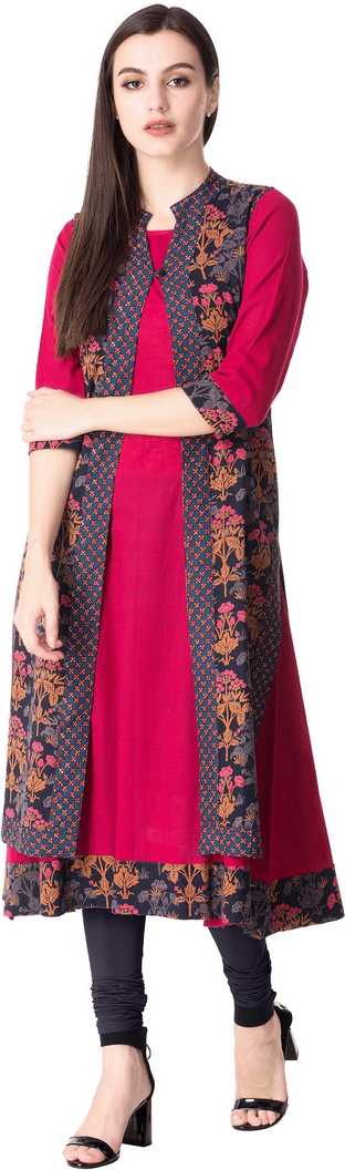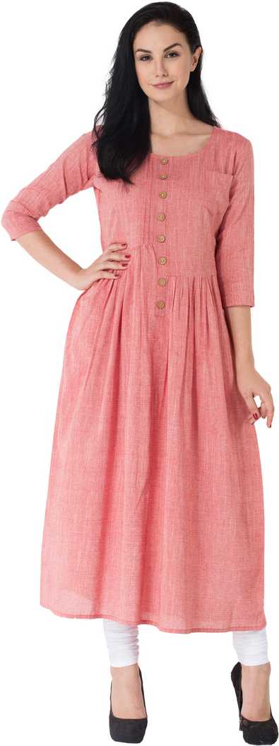 FabTag Casual Solid Women Kurti (Pink, Orange)