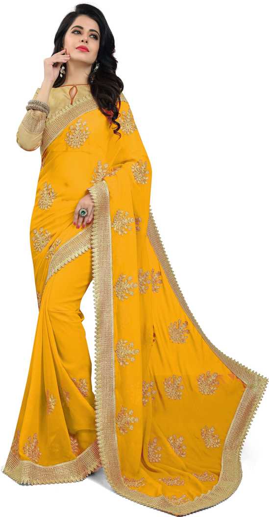 Embroidered Bollywood Poly Georgette Saree (Yellow)