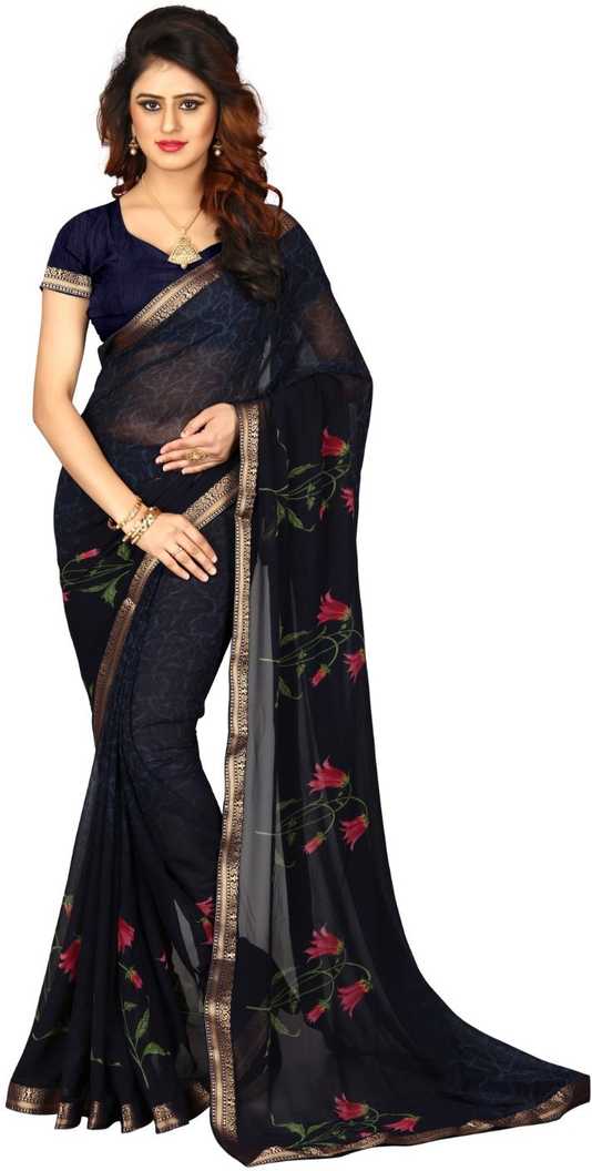 Floral Print Bollywood Georgette Saree (Multicolor)
