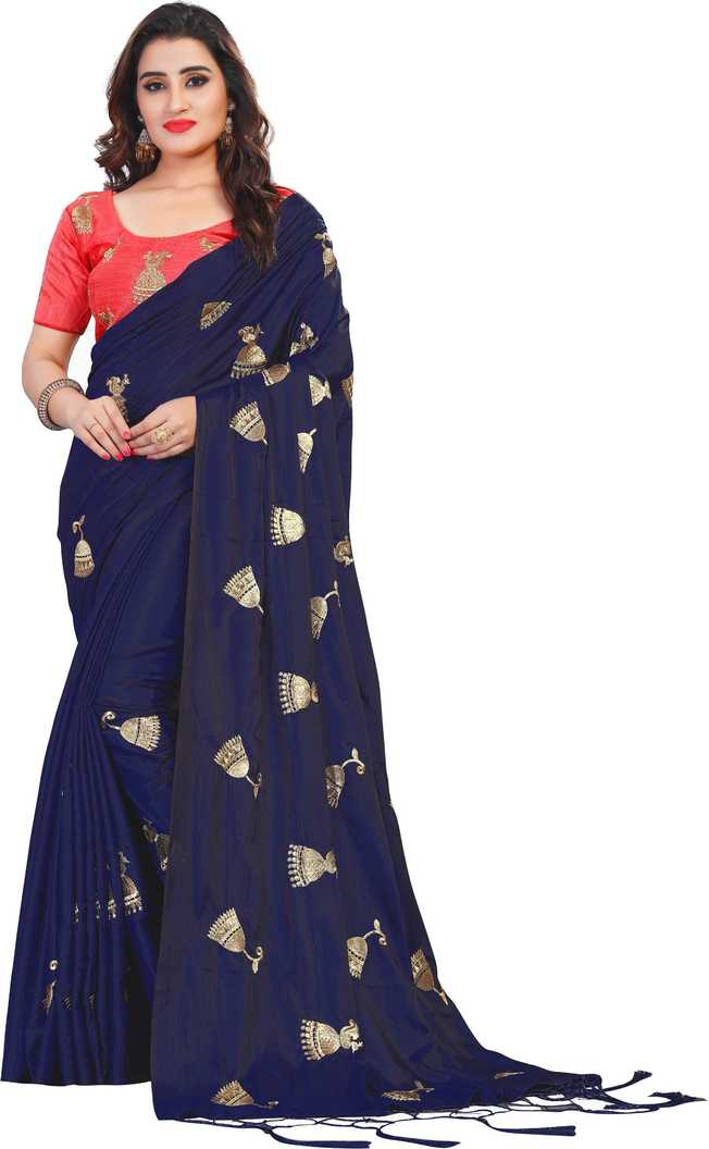 Embroidered Bollywood Poly Silk Saree (Blue)