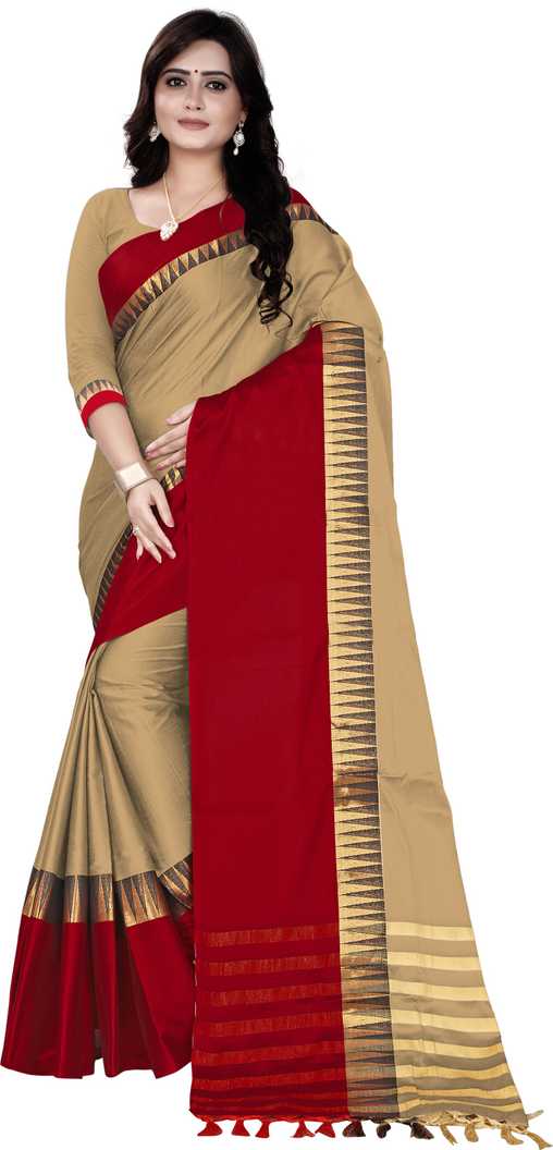 Striped Fashion Cotton Silk Saree (Red, Gold)