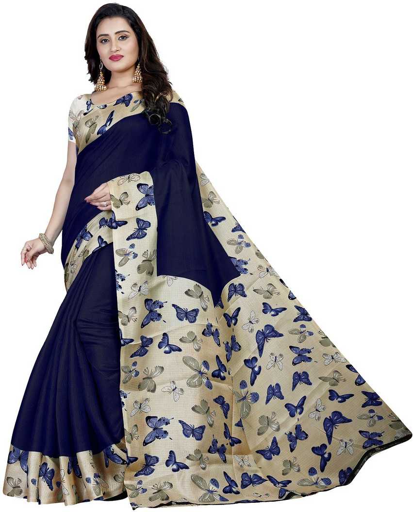 Printed Kalamkari Cotton Blend Saree (Dark Blue)