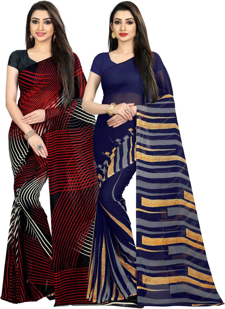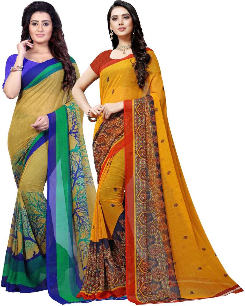 Printed Fashion Georgette Saree (Pack of 2, Multicolor)