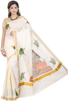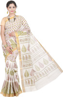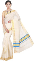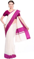 Fashionkiosks Self Design Balarampuram Cotton Saree(White)