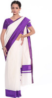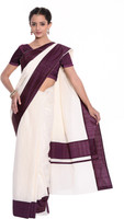 Fashionkiosks Self Design Kasavu Handloom Cotton Saree(Purple)