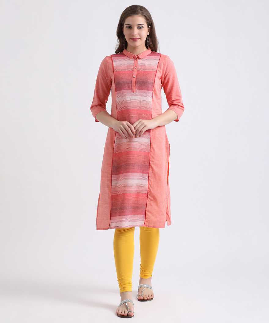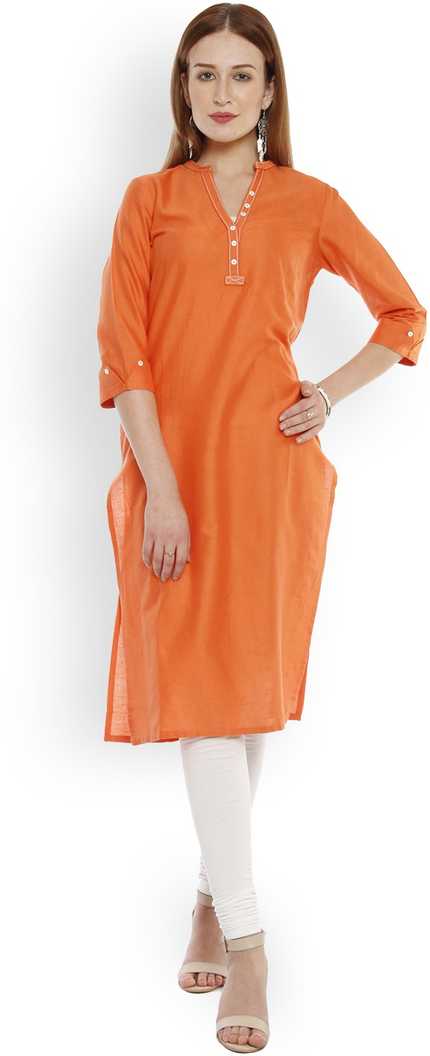 Women Solid Straight Kurta (Orange)