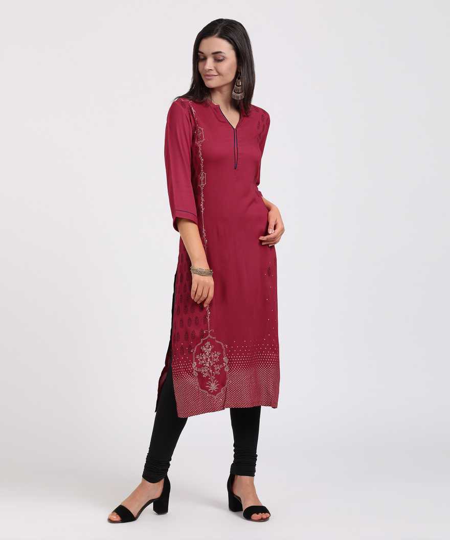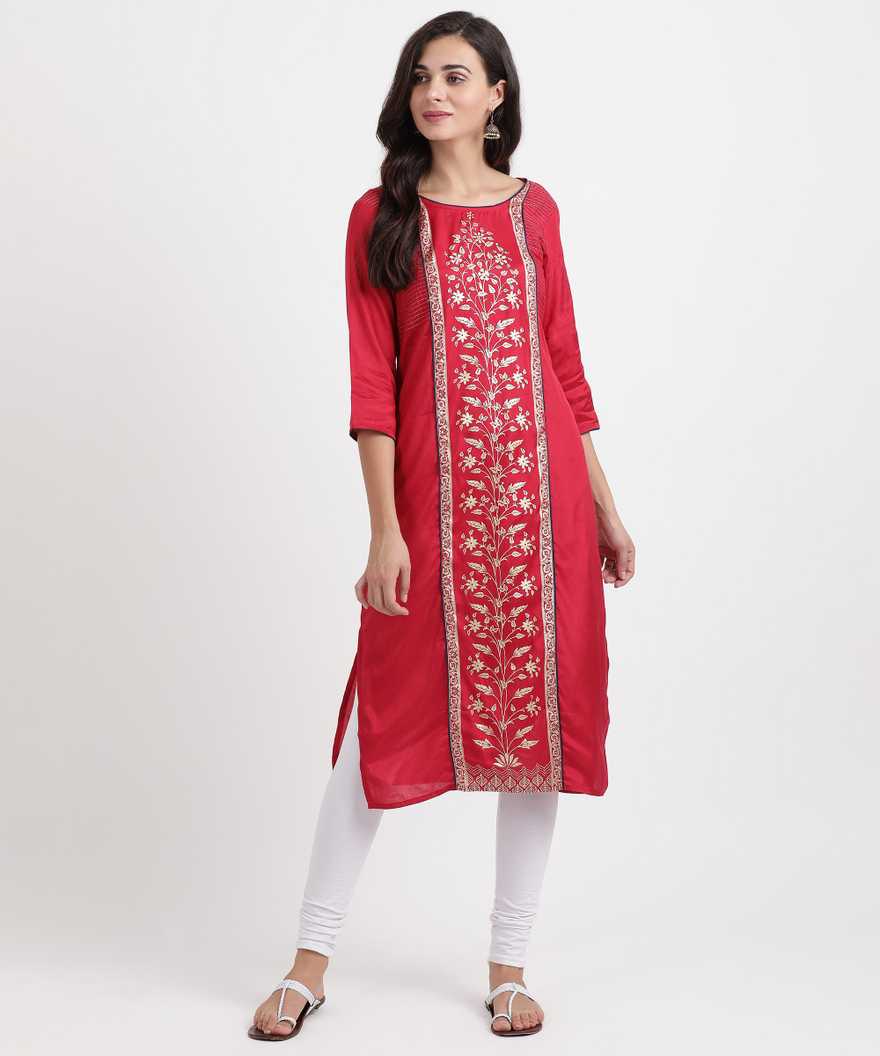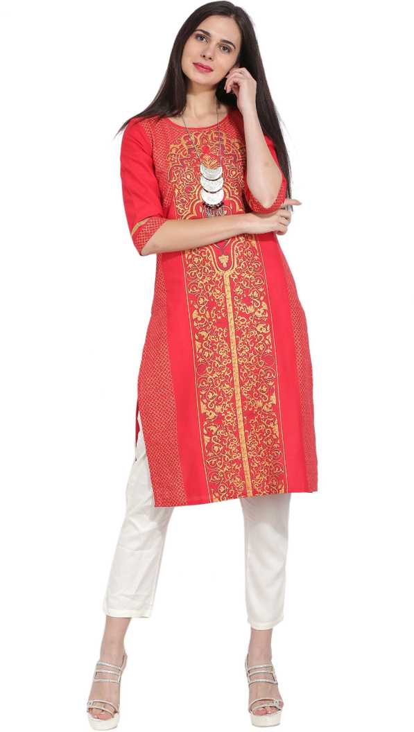 Women Printed Straight Kurta (Red)
