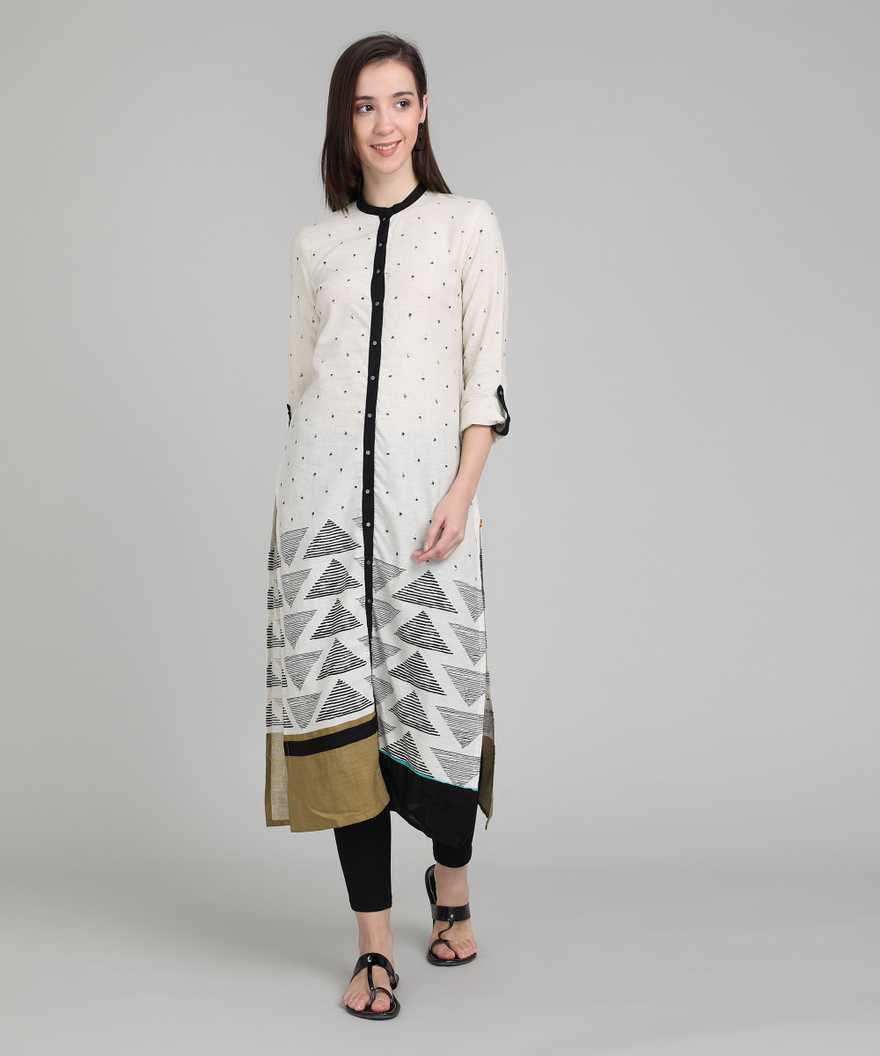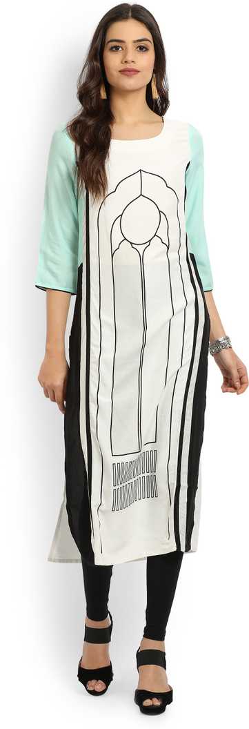 Women Printed Straight Kurta (White, Green)