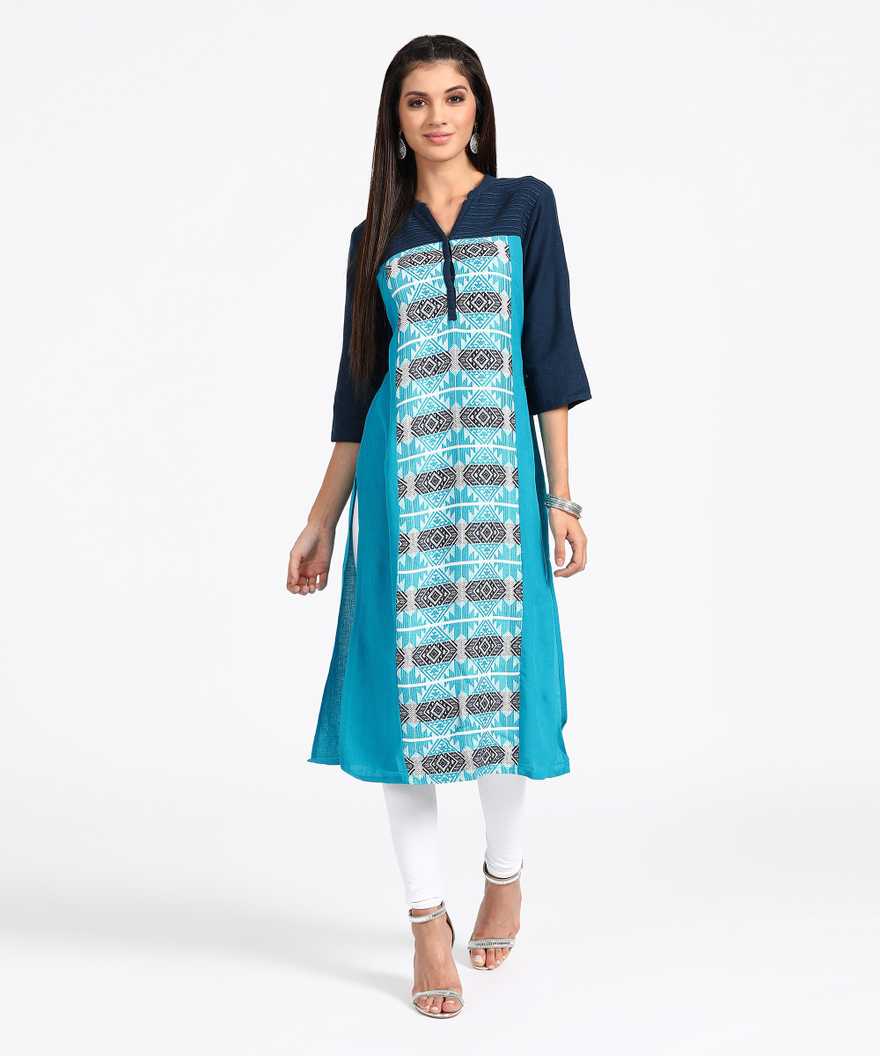 Women Colorblock Straight Kurta (Multicolor)