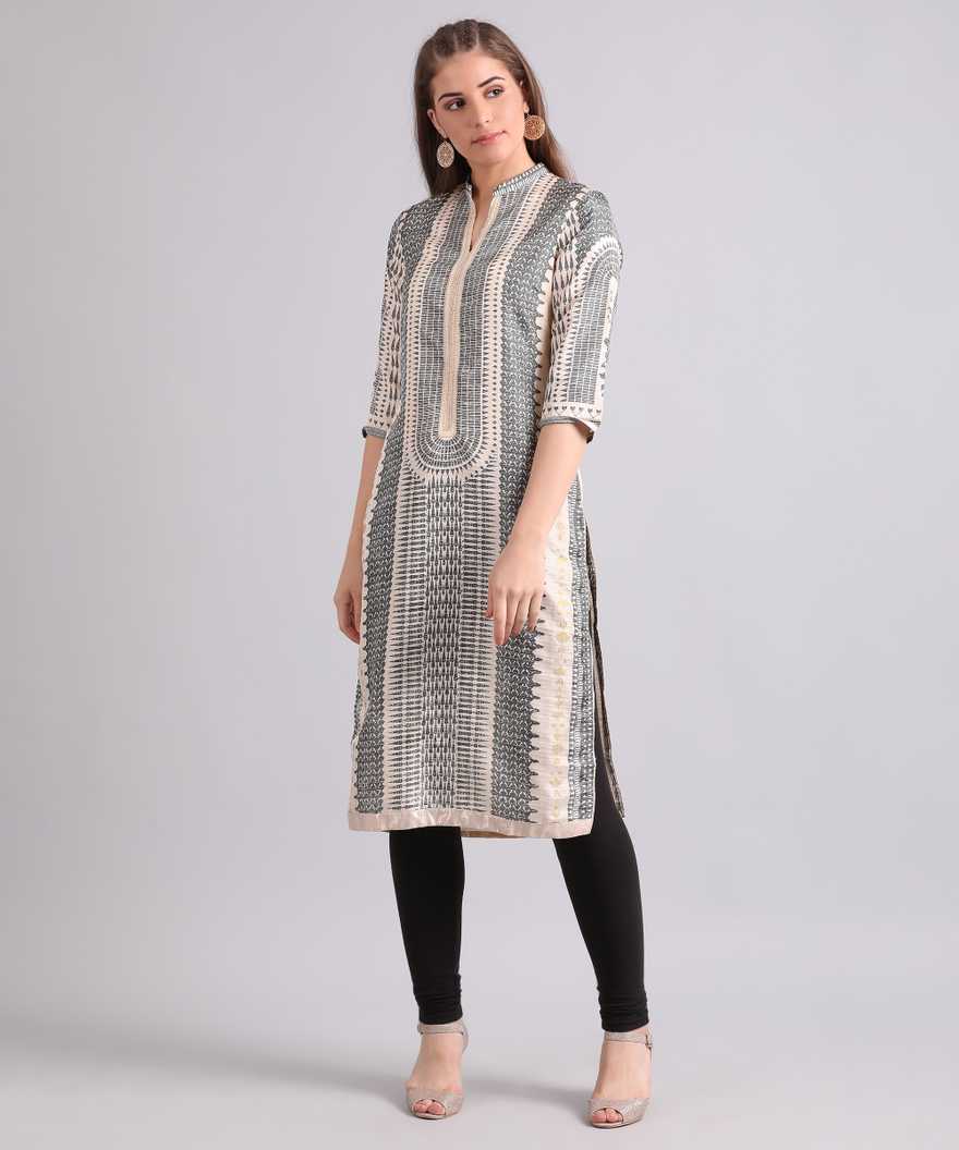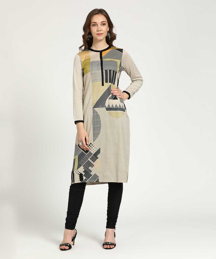Women Printed Straight Kurta (Beige)