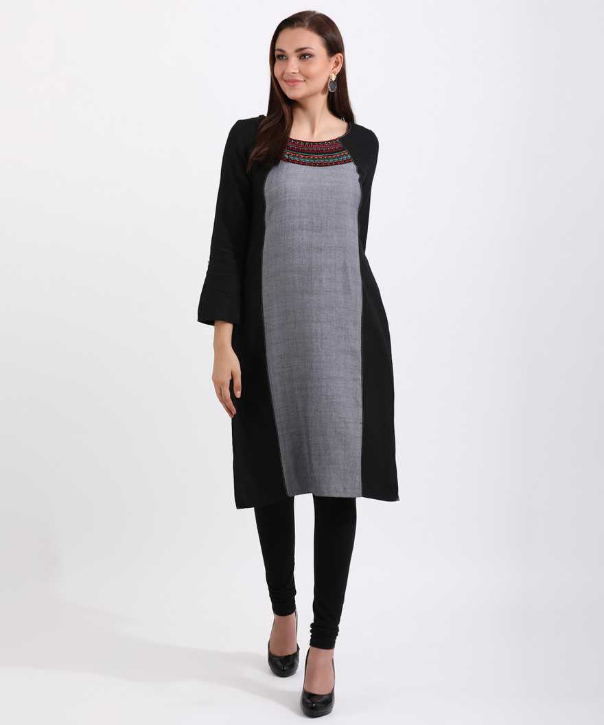 Women Embroidered Straight Kurta (Black)