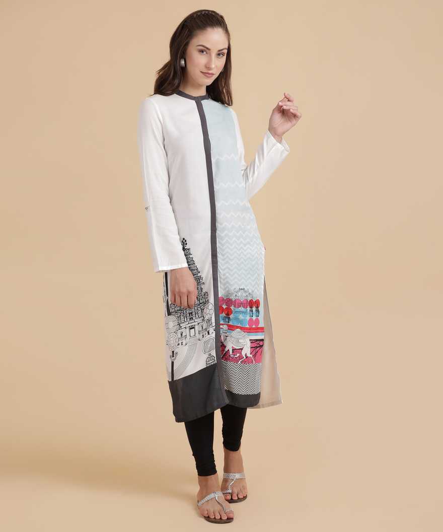 Women Printed A-line Kurta (White, Pink)