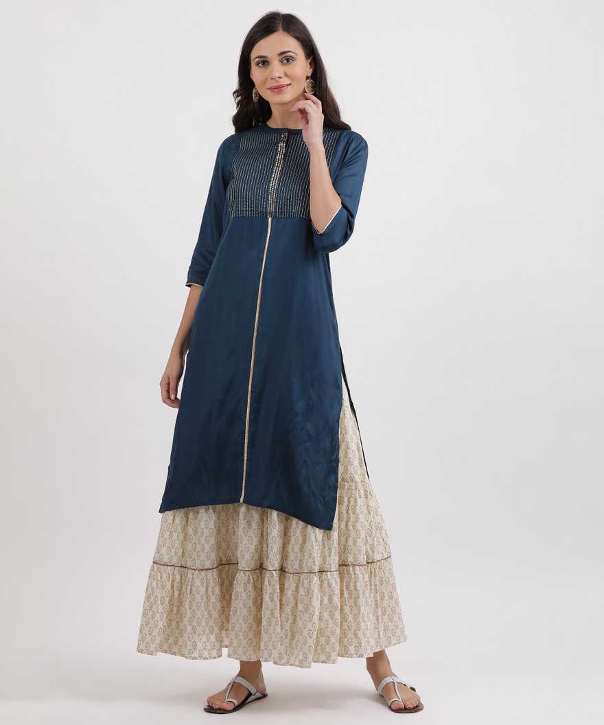 Women Resham Embroidery A-line Kurta (Dark Blue)