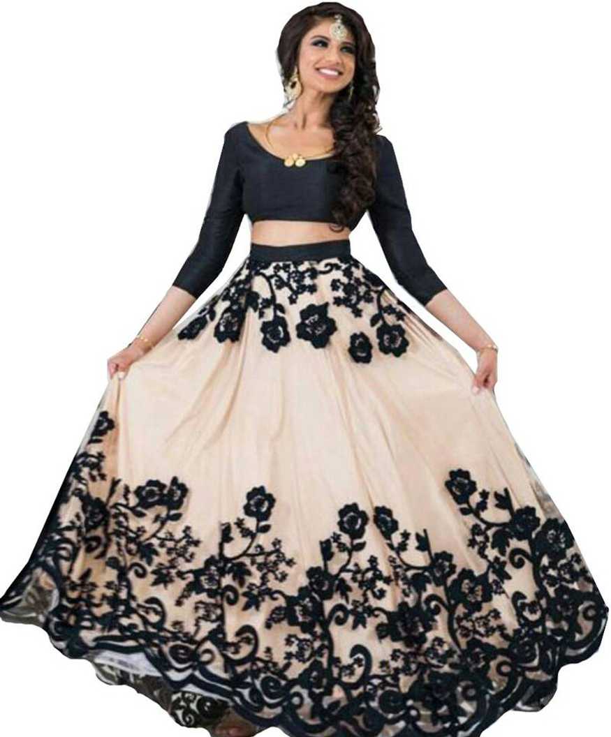 Embroidered Semi Stitched Lehenga Choli (Black)