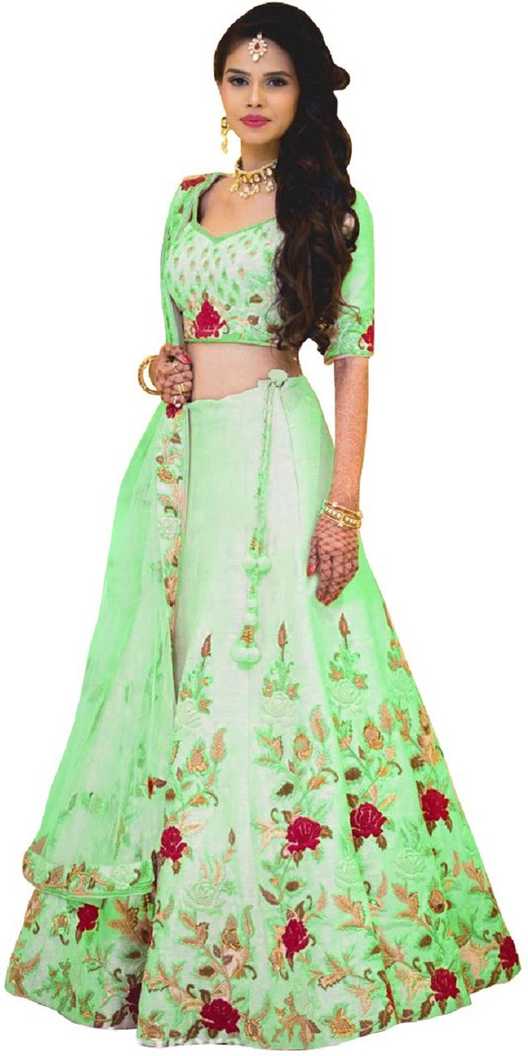 Embroidered Semi Stitched Lehenga Choli (Green)