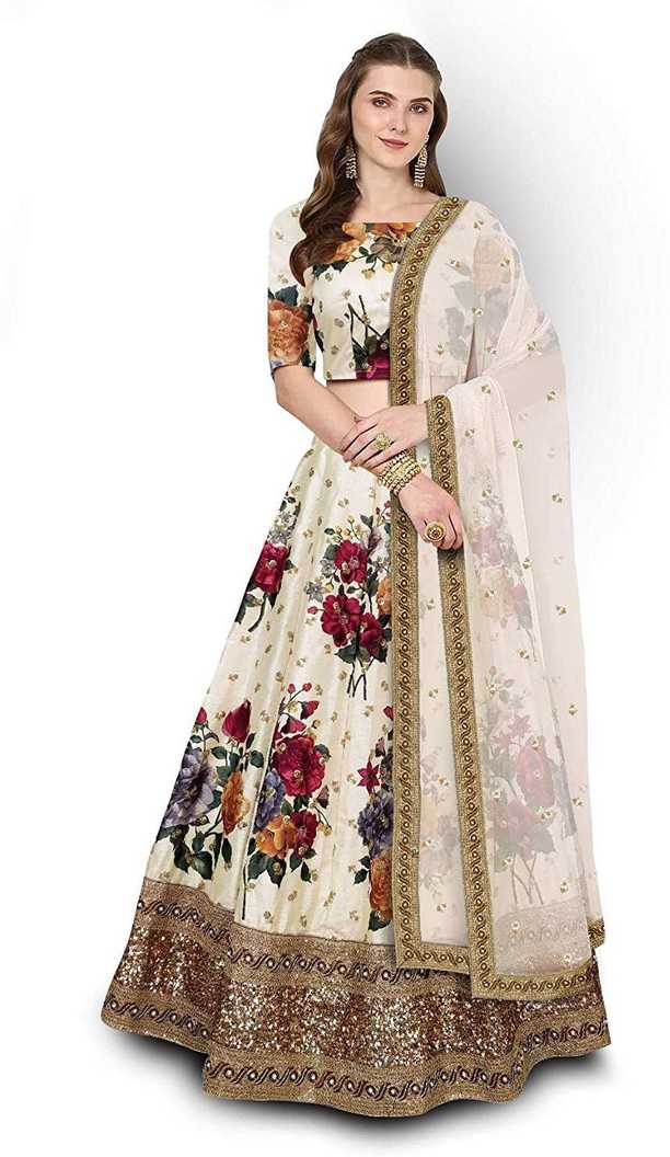 Floral Print Semi Stitched Lehenga Choli (Multicolor)