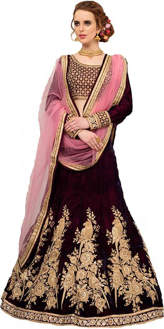 Embroidered Semi Stitched Lehenga, Choli and Dupatta Set (Purple)