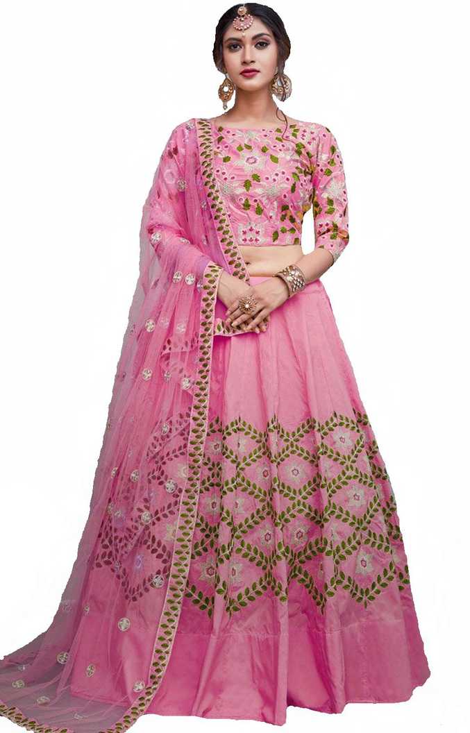 Embroidered Semi Stitched Lehenga, Choli and Dupatta Set (Pink)