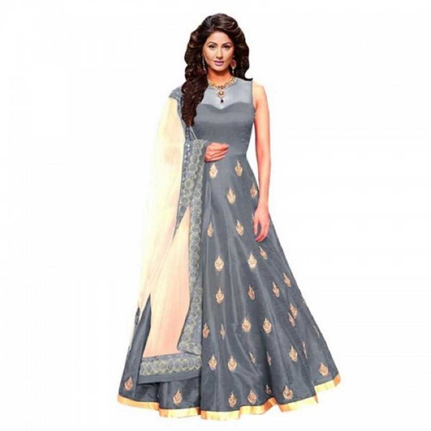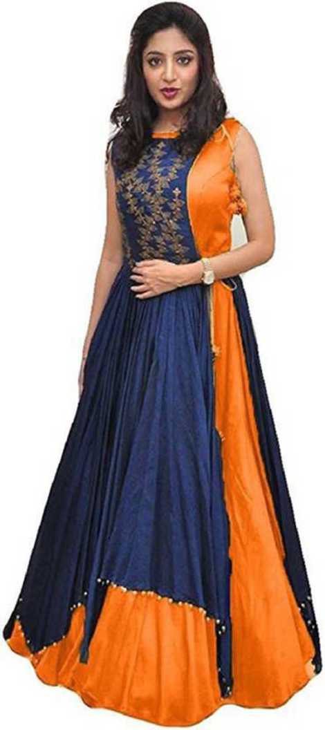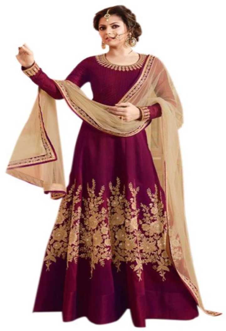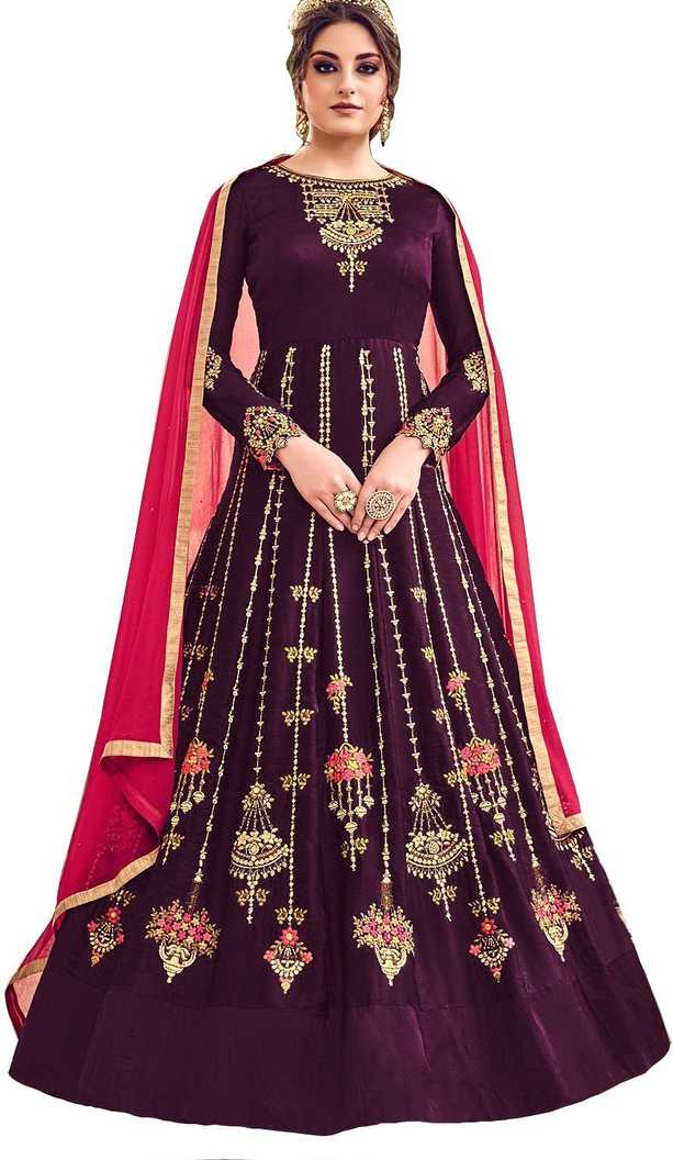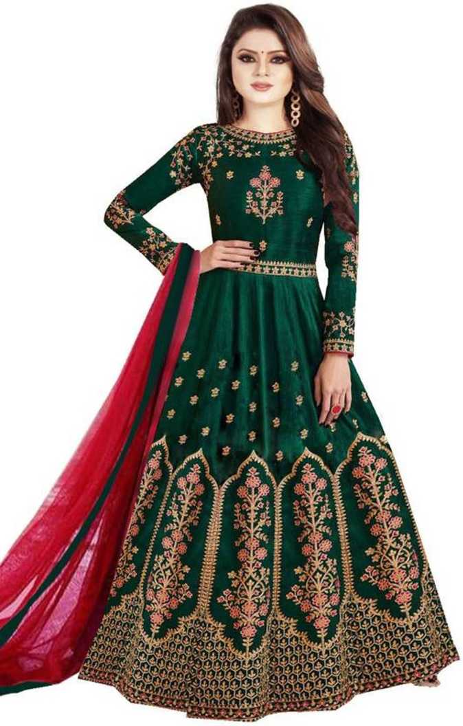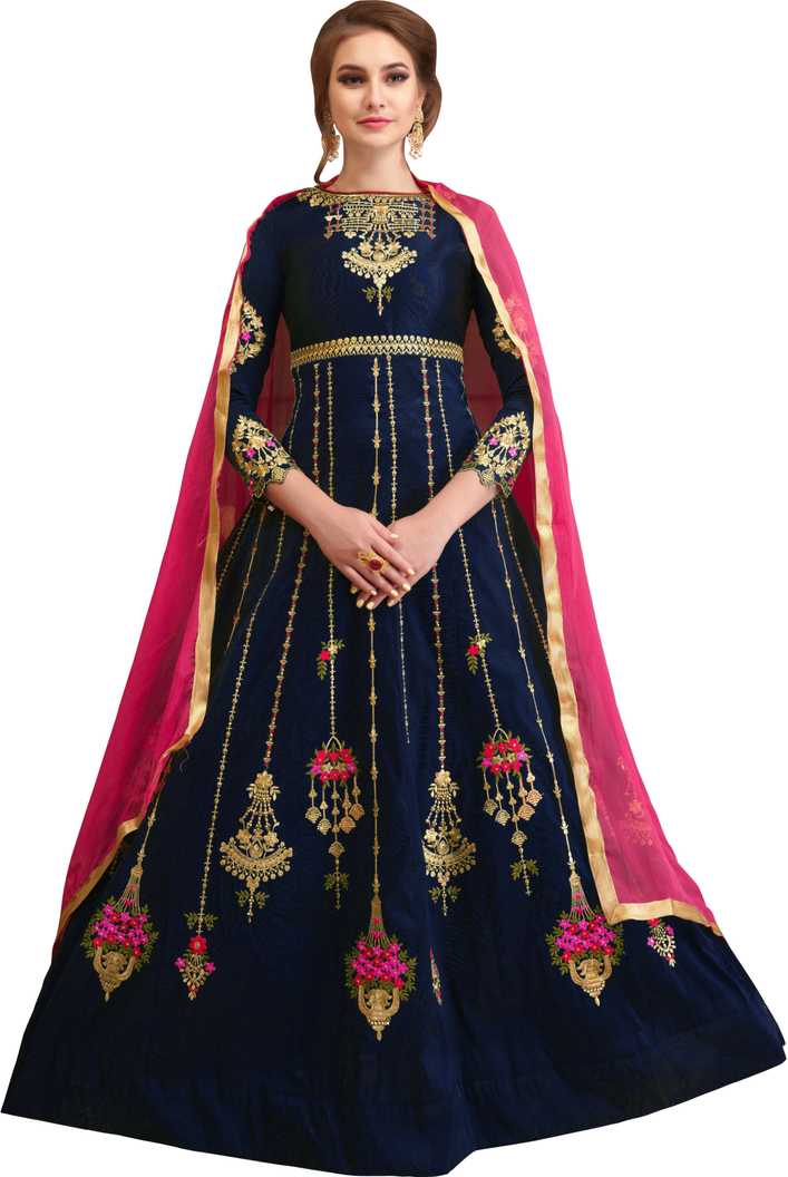 Caffoy Cloth Company Art Silk Embroidered Gown/Anarkali Kurta & Bottom Mate...