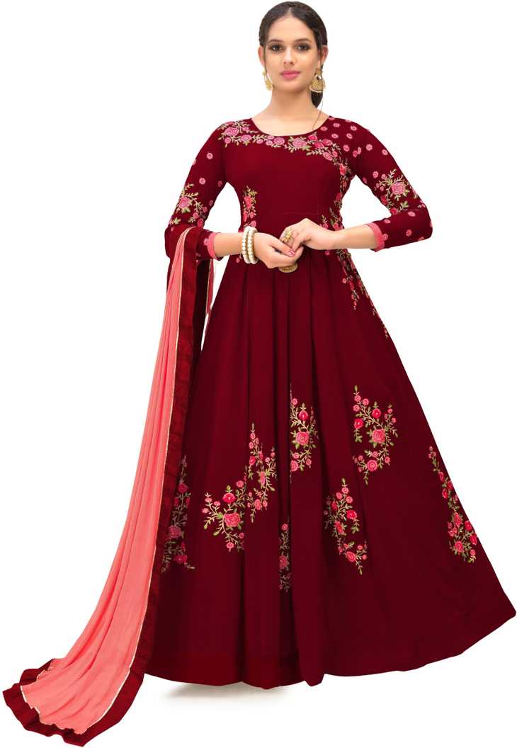 Caffoy Cloth Company Poly Georgette Embroidered Gown/Anarkali Kurta & Botto...