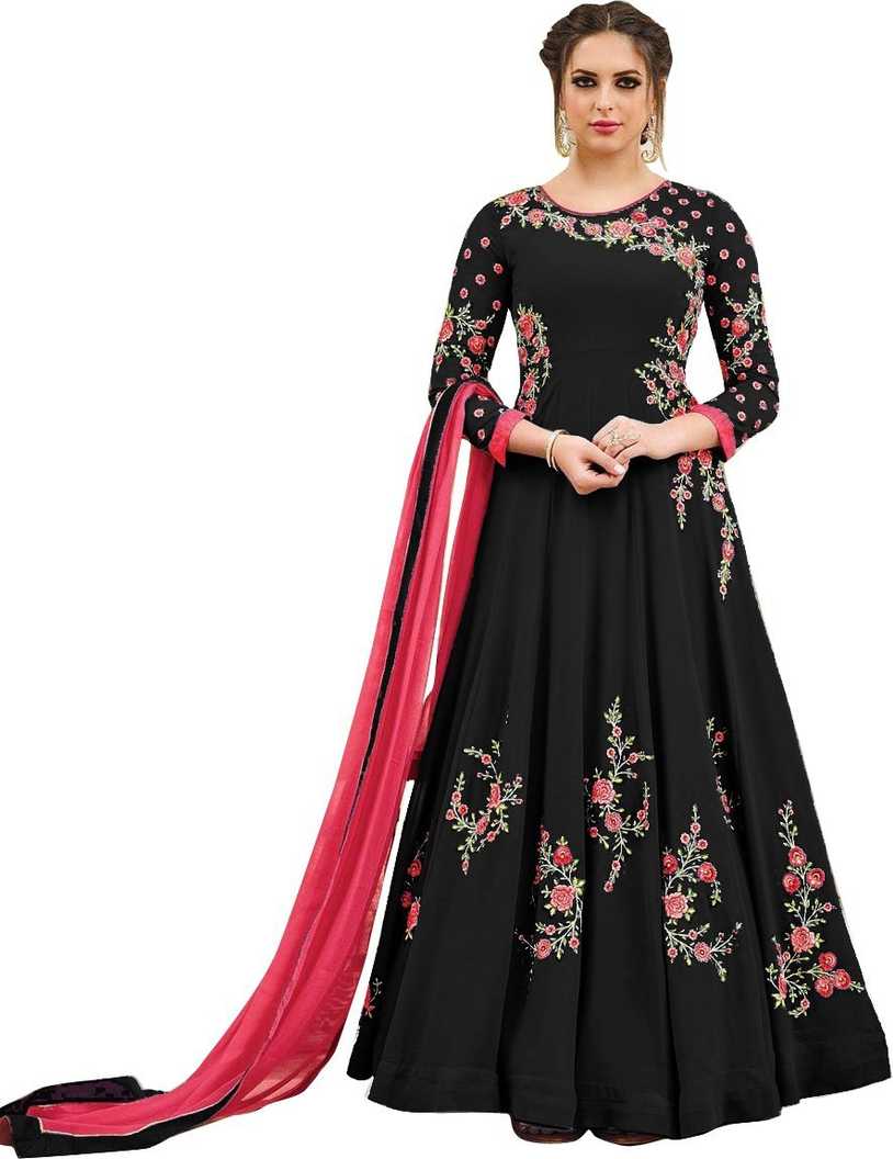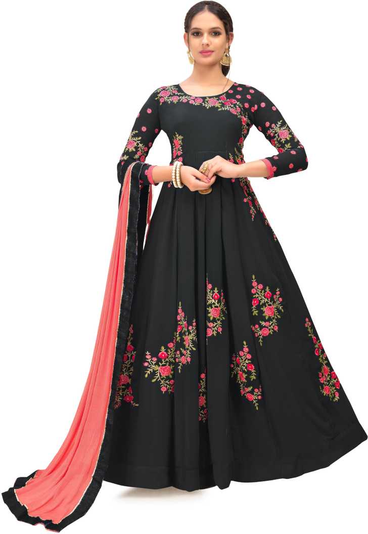 Caffoy Cloth Company Poly Georgette Applique Gown/Anarkali Kurta & Bottom M...