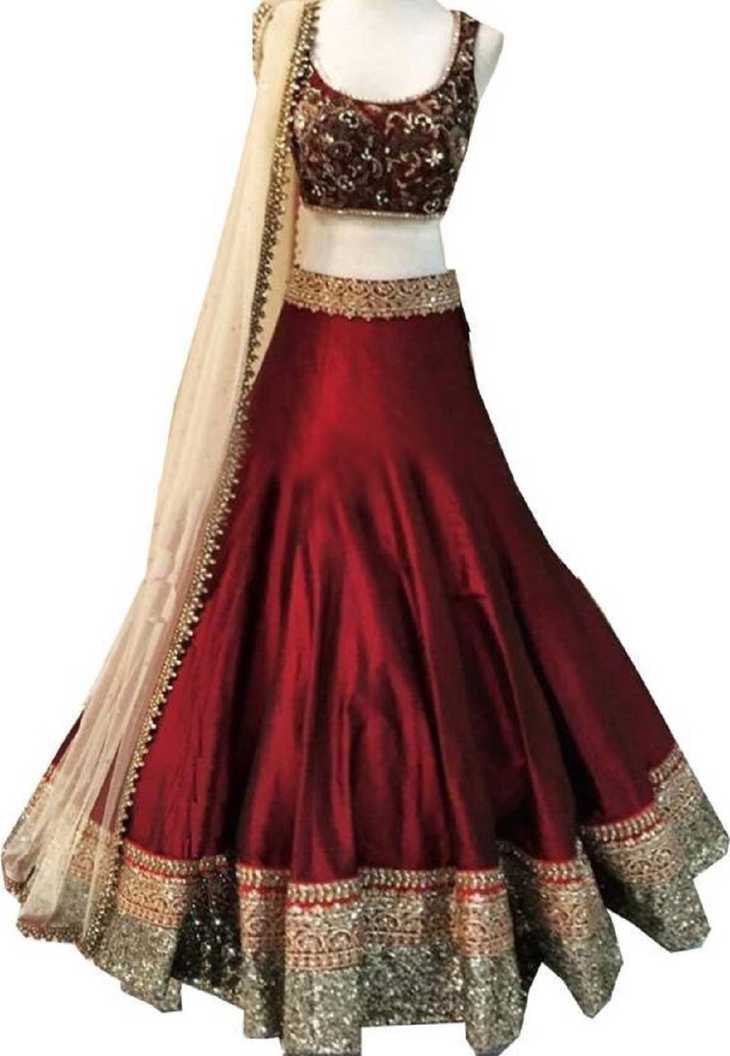 Embroidered Semi Stitched Ghagra, Choli, Dupatta Set (Maroon)