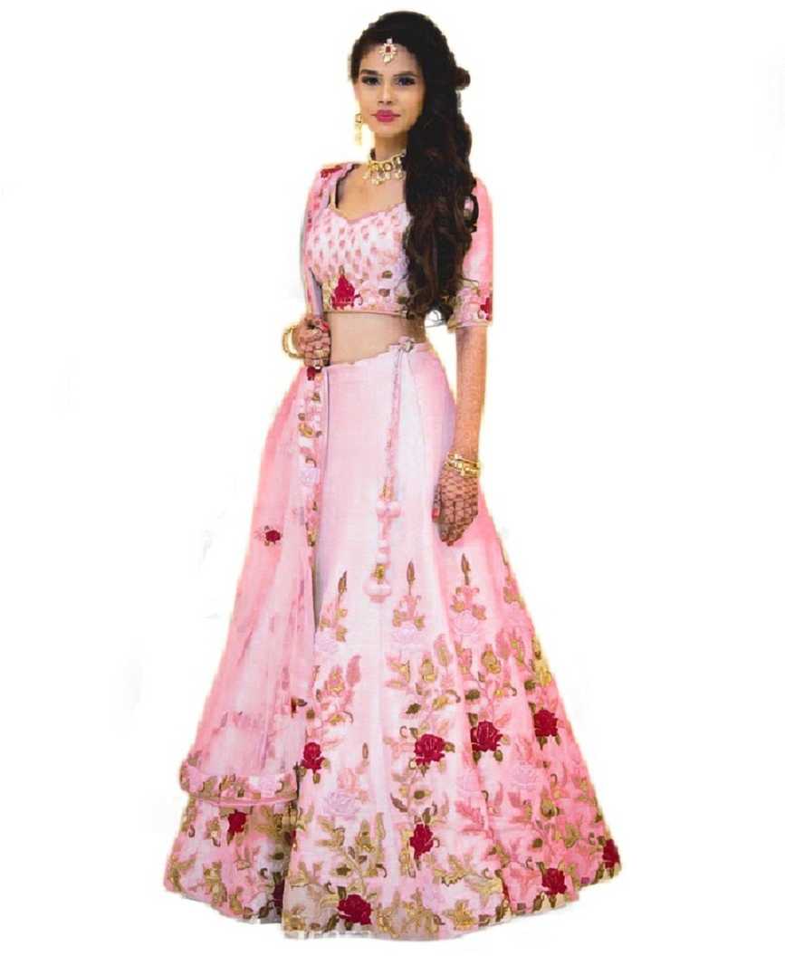 Floral Print Semi Stitched Lehenga, Choli and Dupatta Set (Pink)
